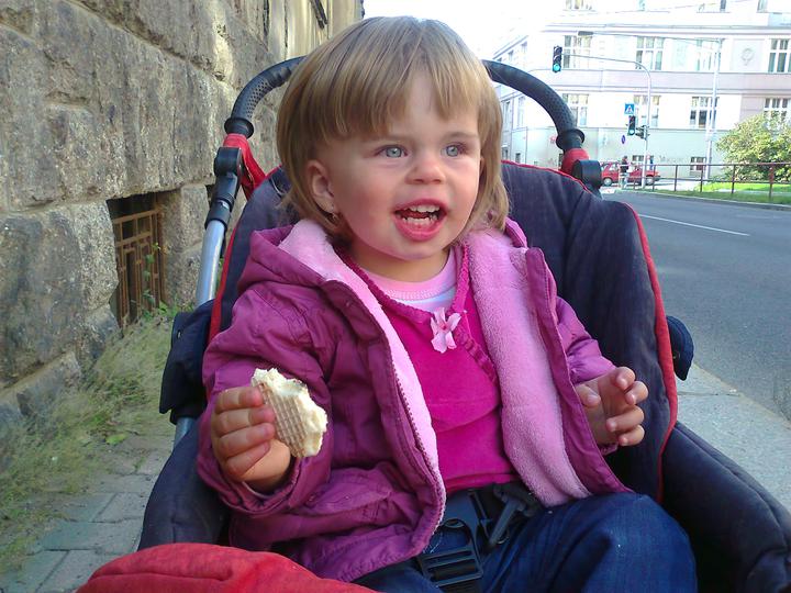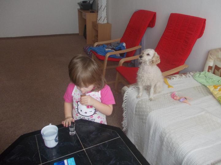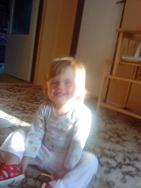 Co se dnes k ránu stalo vzbudím se asi v pět ráno a slyším knourání myslím si že to Ana ze spaní tak se podívám do postýlky a ona tam není víte kde jsem jí našla u dveří od koupelny jsem zvědavá kde jí najdu zítra cestovatelku