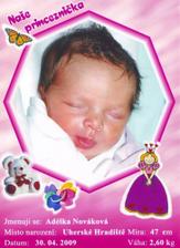 jmenuji se Adélka a narodila jsem se v Uherském Hradišti, v týdnu 35+4. Váha 2,600g a výška 47 cm.