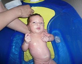 26.5. - první návštěva paní doktorky, váha 3000g a výška 5Ocm, rosteme jako z vody.