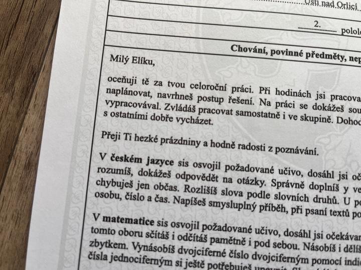 A dnes? Čtou si vysvědčení a z toho získají poměrně jasnou představu, čemu se Eli ve škole věnuje. Co mu perfektně jde, i na čem je ještě potřeba zapracovat. Ta výpovědní hodnota je prostě úplně někde jinde, než když by si jen přečetly výpis známek. A mám opravdu radost, že už to samy vidí.