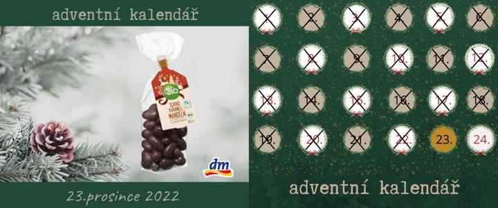 23. prosince - dmBio bio mandle v hořké čokoládě s karamelem