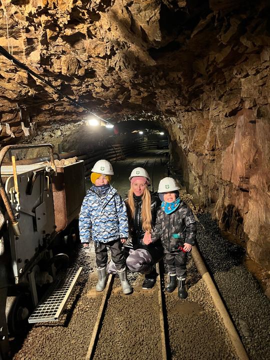 Ale opravdová pecka je to v dolech. Vyfasujete helmu a jdete s průvodcem na cca 45 minutovou procházku do bývalých dolů. Cestou jsou samozřejmě zastávky, kde se dozvíte ty nejzajímavější informace. Naši kluci vše krásně vydrželi a oba to hodně zajímalo. A když vás třeba ani tak nezajímá info, je to tam dole v dole prostě velký zážitek.
