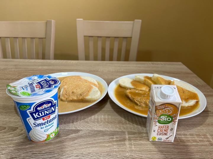 Tentokrát jsem potřebovala kvůli trvanlivosti spotřebovat klasickou smetanu, takže dnešní “něco jako svíčková” byla ve 2 variantách 😀