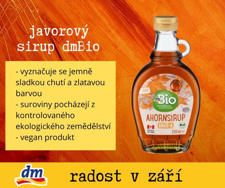 Pokud ano, tak určitě nezapomeňte během měsíce září přidat příspěvek do #dm skupiny - protože pak to můžete být právě vy, komu společně s dm pošleme tenhle sirup od privátní značky dmBio jako dárek pro radost určený pro aktivní uživatelky skupiny Ve víru dm mánie 🎁