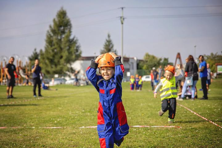 A nesmí chybět ani druhý závodník - tenhle má navíc svůj styl. Když běží, drží se za hlavu, protože mu padá přilba. Na druhé fotce je krásně vidět, že takhle běželi s kamarádem spolu - jsou 2 nejmenší, takže jim ještě pořádně nedržely 😎