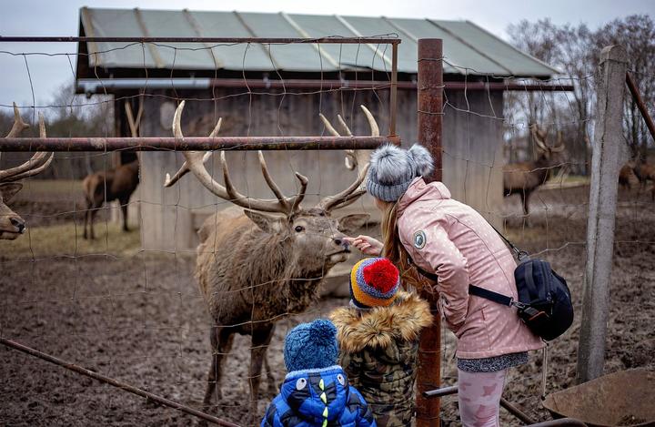 Dneska jsme měli obrovské štěstí, protože několik jelenů přišlo až k nám. Po nějaké době dorazil i přímo pan majitel, který nás hned zapojil do krmení - takže kluci mohli těmhle krasavcům dávat dobroty z ruky.