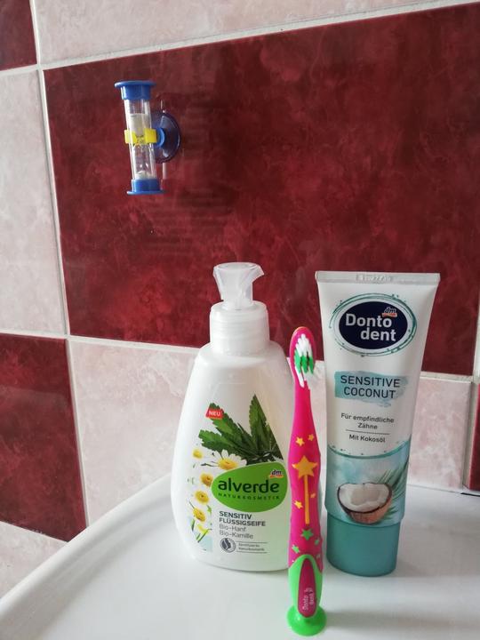 Jsou to vlastně přesýpací hodiny, které odměřuji 3 minuty, tedy čas, po který by si měl člověk čistit zuby. A z čištění zubů se tak stává něco zajímavého a zábavného 👏