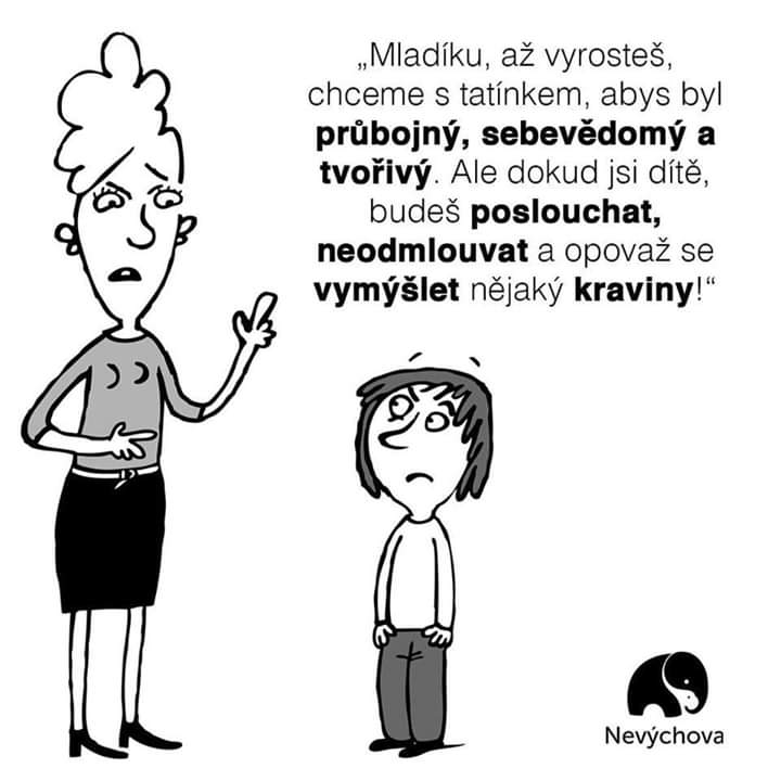 Tenhle obrázek mě vždycky pobaví, ale vlastně je docela složitý najít správnou míru toho, aby bylo dítě slušně vychované a nebylo zadupany příkazy a zákazy 🙄