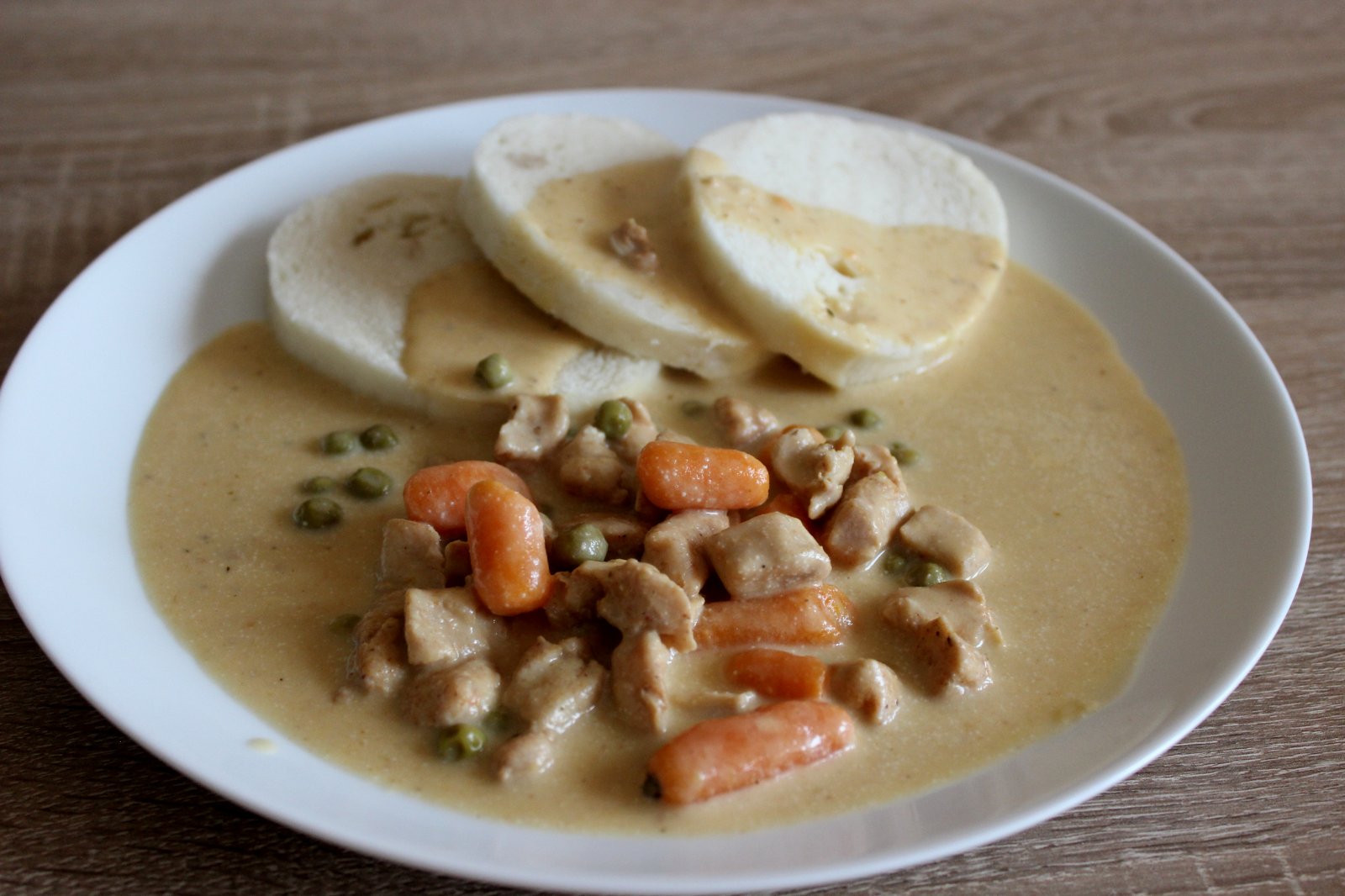Kuřecí prsa s hráškem, baby karotkou na smetanovo hořčičné omáčce