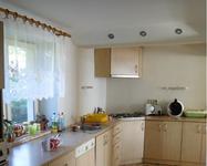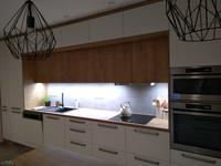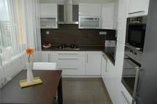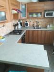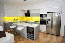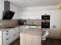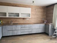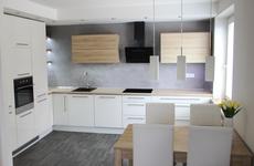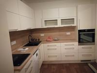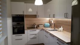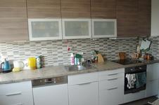 Nemohu dat svou kuchyn, protoze ten metrovy kus, na kterem ted varim neni reprezentovatelny a neni "muj". Ale na fotce je 1.navrh me budouci kuchyne v rozestautenem domku. Byl to jen nastrel a firma ted pracuje na upravach. Bude v bilem lesku, seda nebo tm.modra deska, vysouvaci digestor...