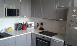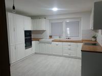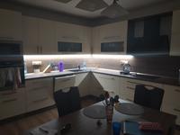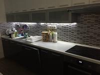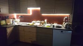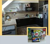 Přidávám část naší kuchyně, na fotce ještě chybí ostrůvek. Takhle uklizeno normálně nemám, ale zrovna jsme si nechávali dodělávat po pěti letech poslední řadu horních skříněk. Nejčastěji používám tablety do myčky (jar/dm), jar na nádobí (jar), otcovy čistič (dm) a přípravek na sklo (Clin).