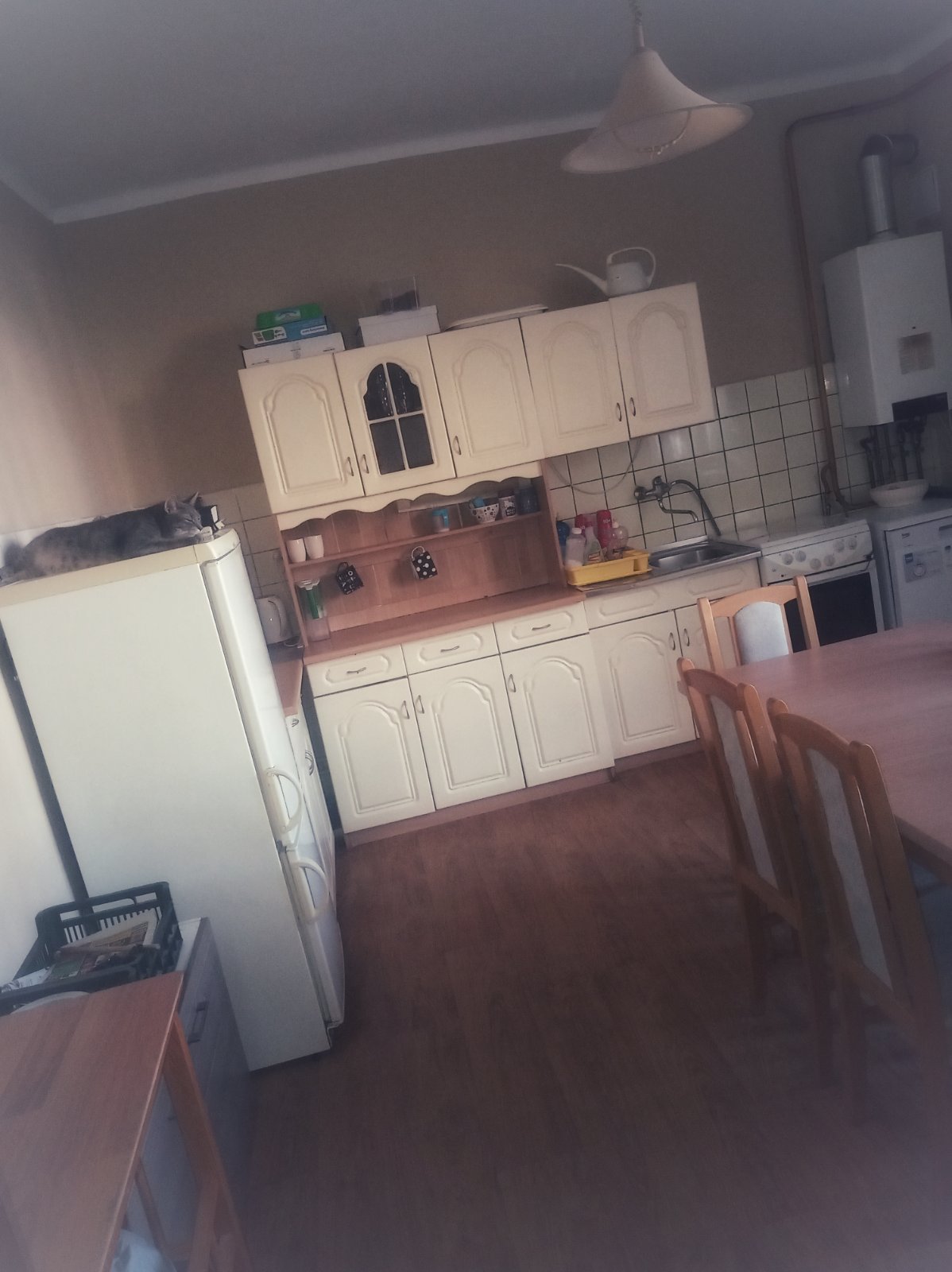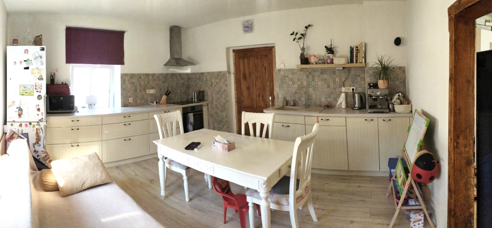Nemám žádnou výstavní kuchyň ani kuchyň snů. Jsme v podnájmu a linka je původní a do nové investovat ani nechceme. Ale mám ve své kuchyni ráda hlavně ten prostor. Konečně se mi tam vejde velký stůl a 6 židli k tomu😀😀