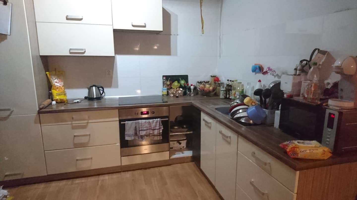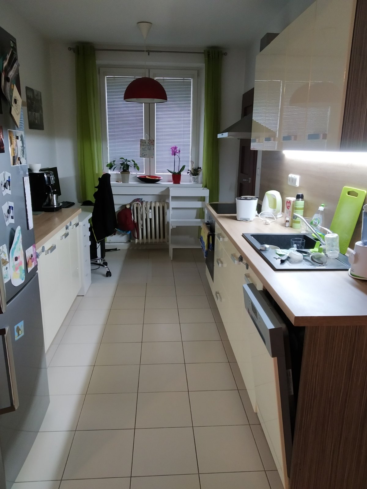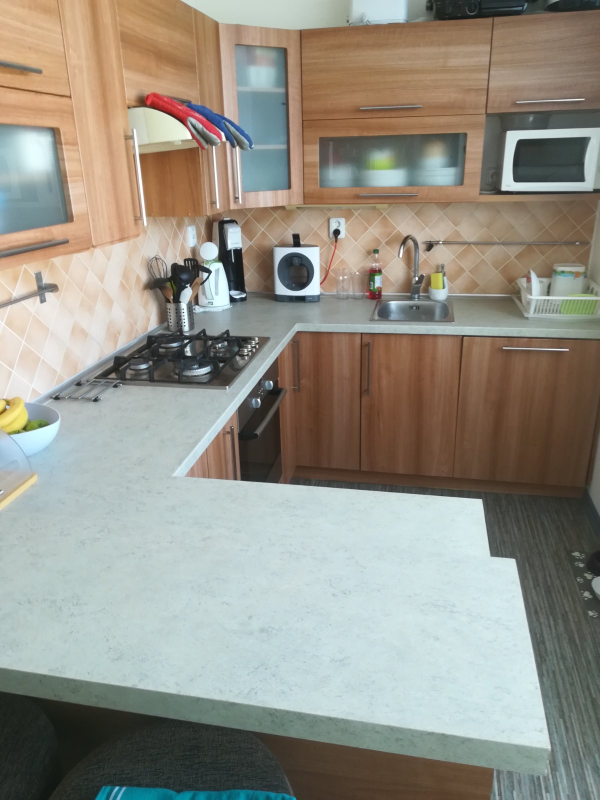 Fotku sve kuchyne nemam, protoze jsme v najmu a moje neni, ja bych volila uplne jinou, v kuchyni pouzivam klasicky jar a houbicku na nadobi, tekuty pisek, ocet a antibakterialni cistic, mop a hadr na prach.