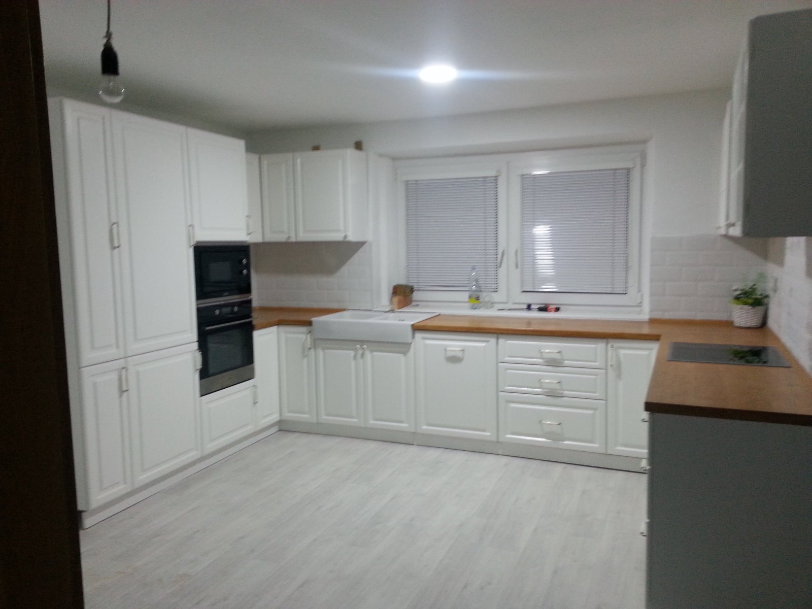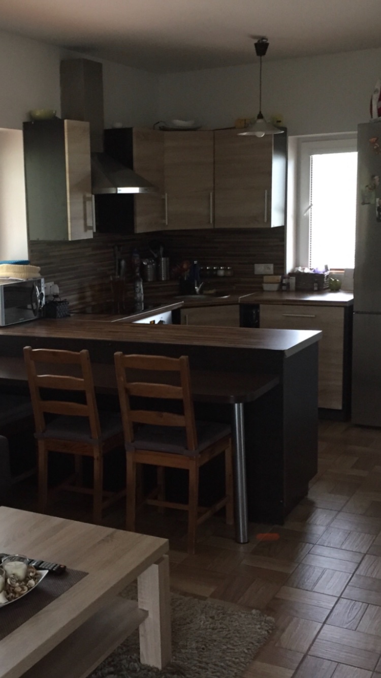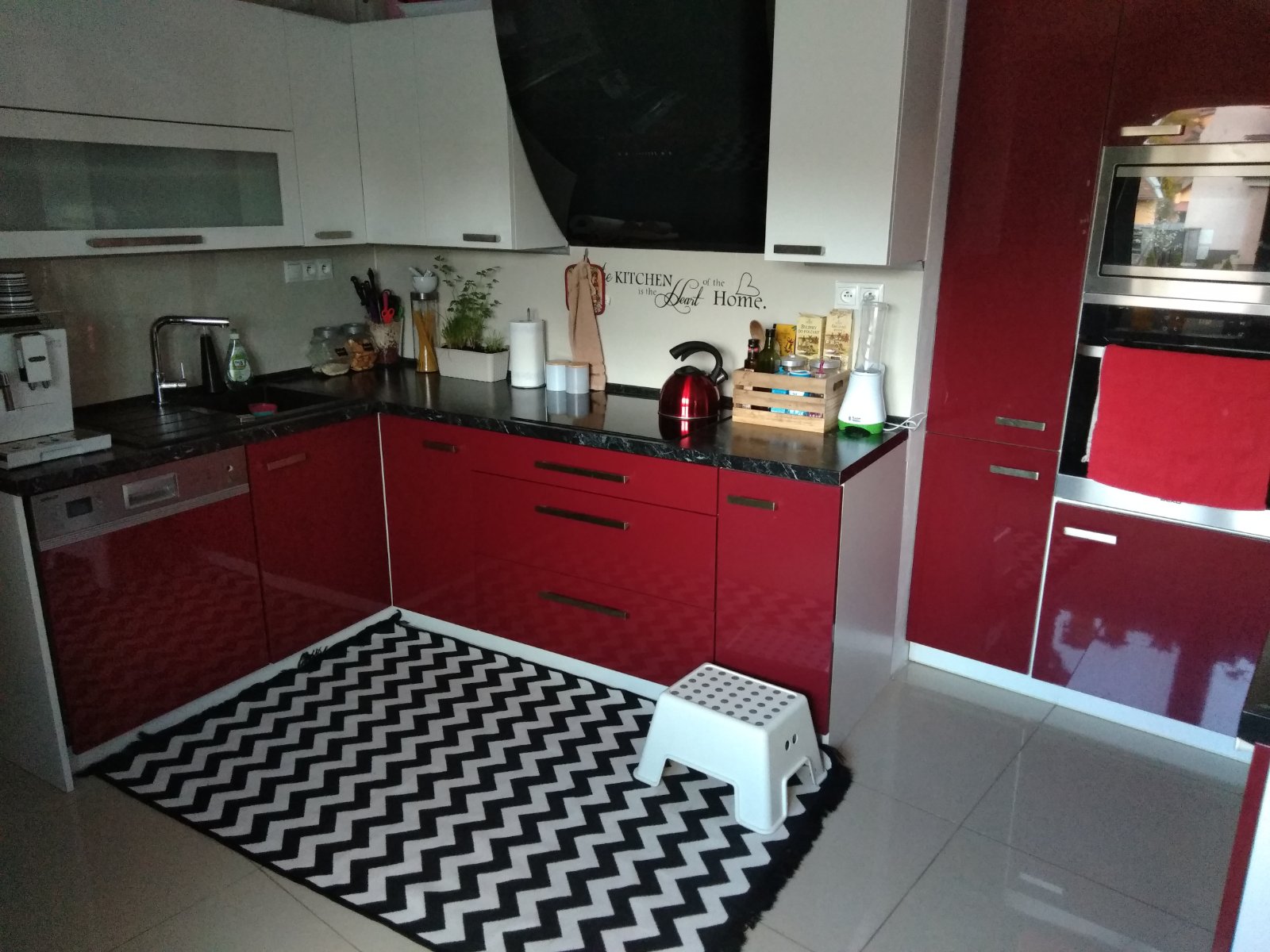Fotku sve kuchyne nemam, protoze jsme v najmu a moje neni, ja bych volila uplne jinou, v kuchyni pouzivam klasicky jar a houbicku na nadobi, tekuty pisek, ocet a antibakterialni cistic, mop a hadr na prach.