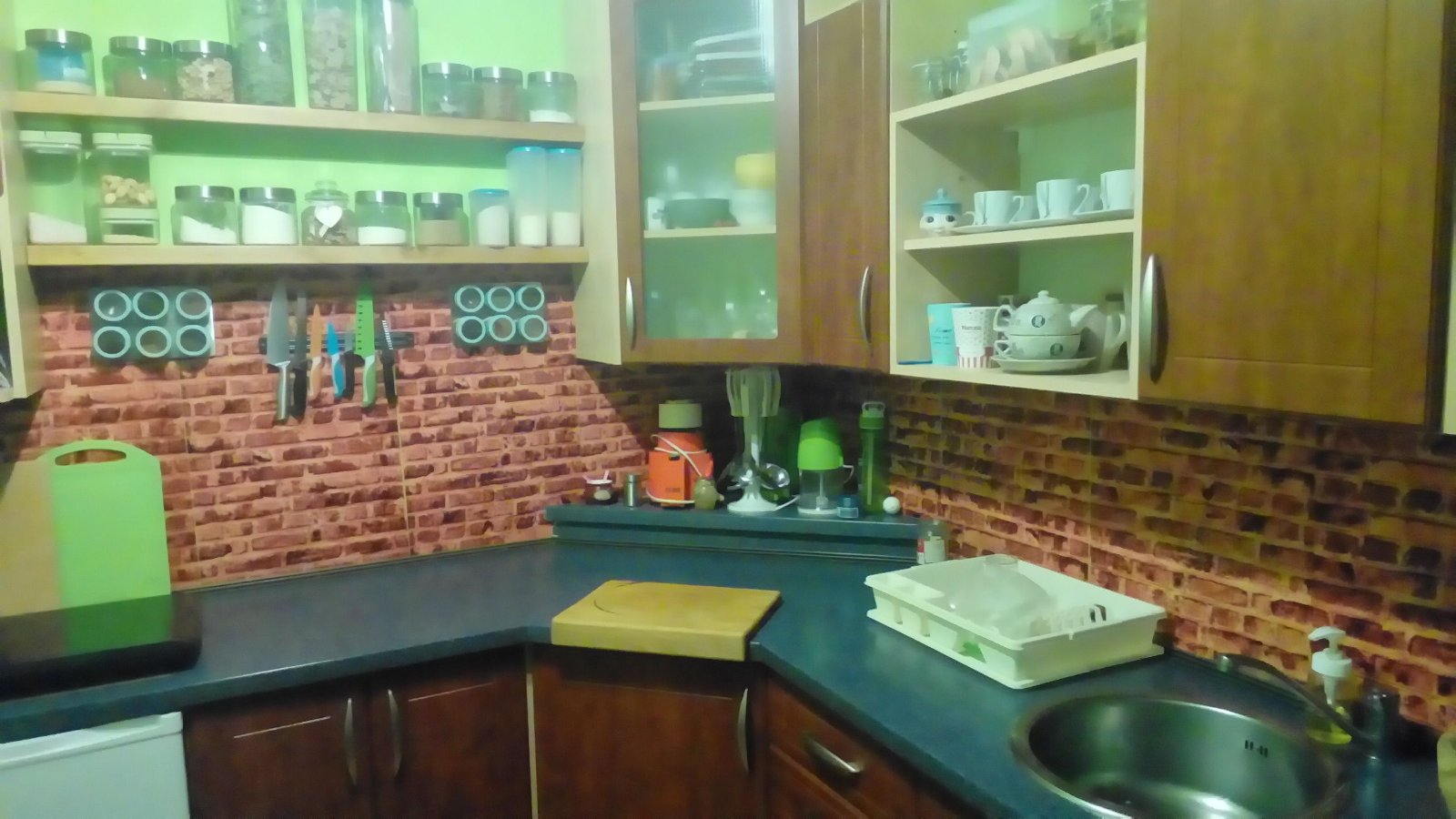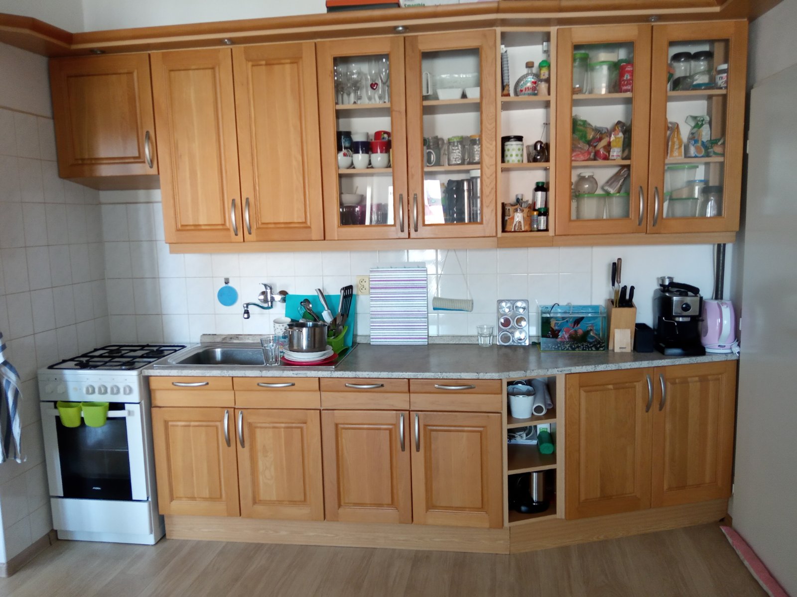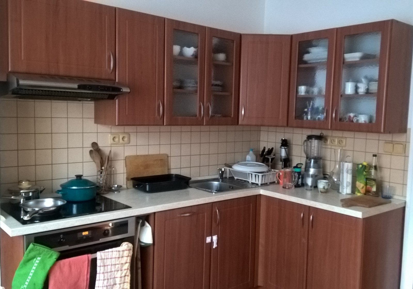 Máme kuchyň ještě po předchozích majitelích. Je malá panelaková. I když má své mouchy a už je to ,,stařenka", je to moje 1.kuchyň a vždycky jí to prvenství zůstane.