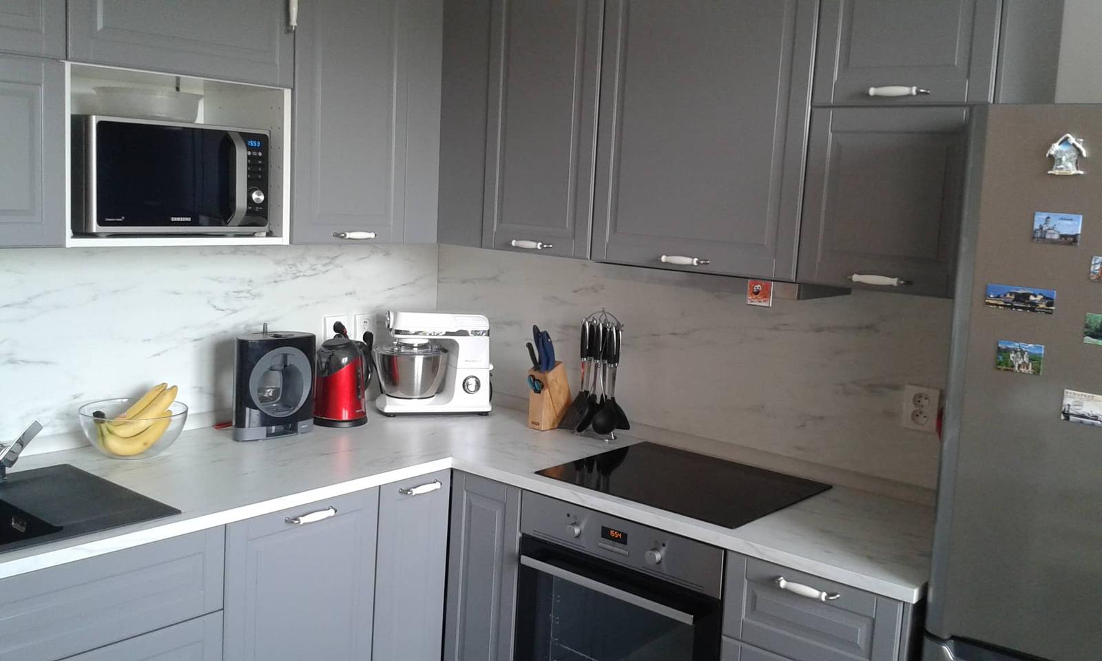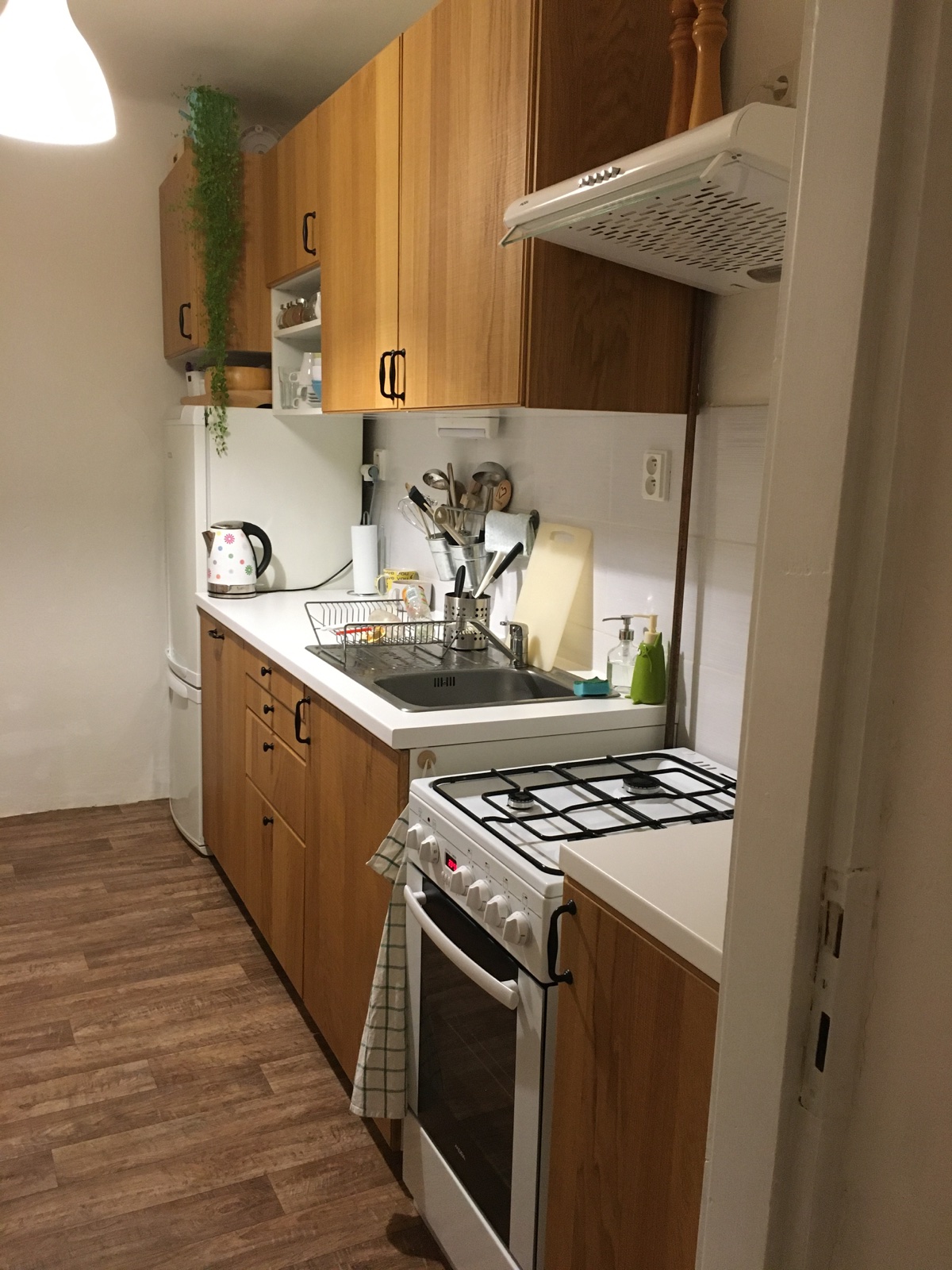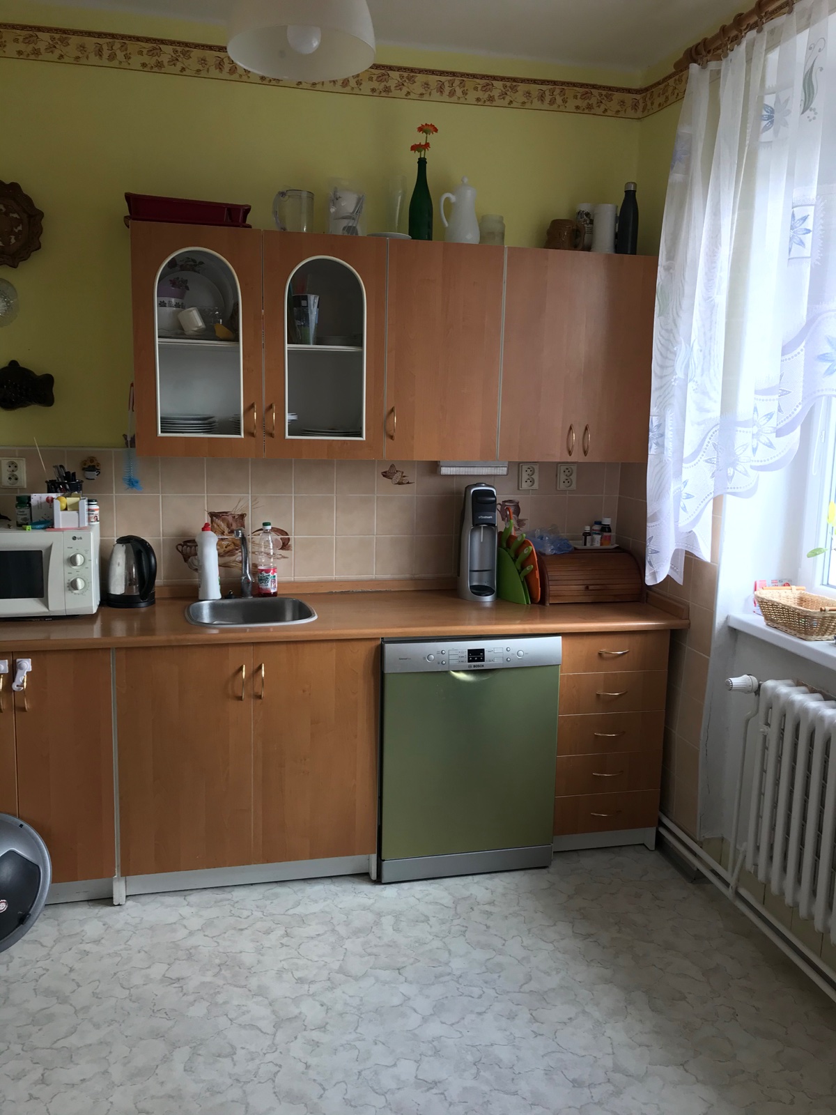 Máme kuchyň ještě po předchozích majitelích. Je malá panelaková. I když má své mouchy a už je to ,,stařenka", je to moje 1.kuchyň a vždycky jí to prvenství zůstane.