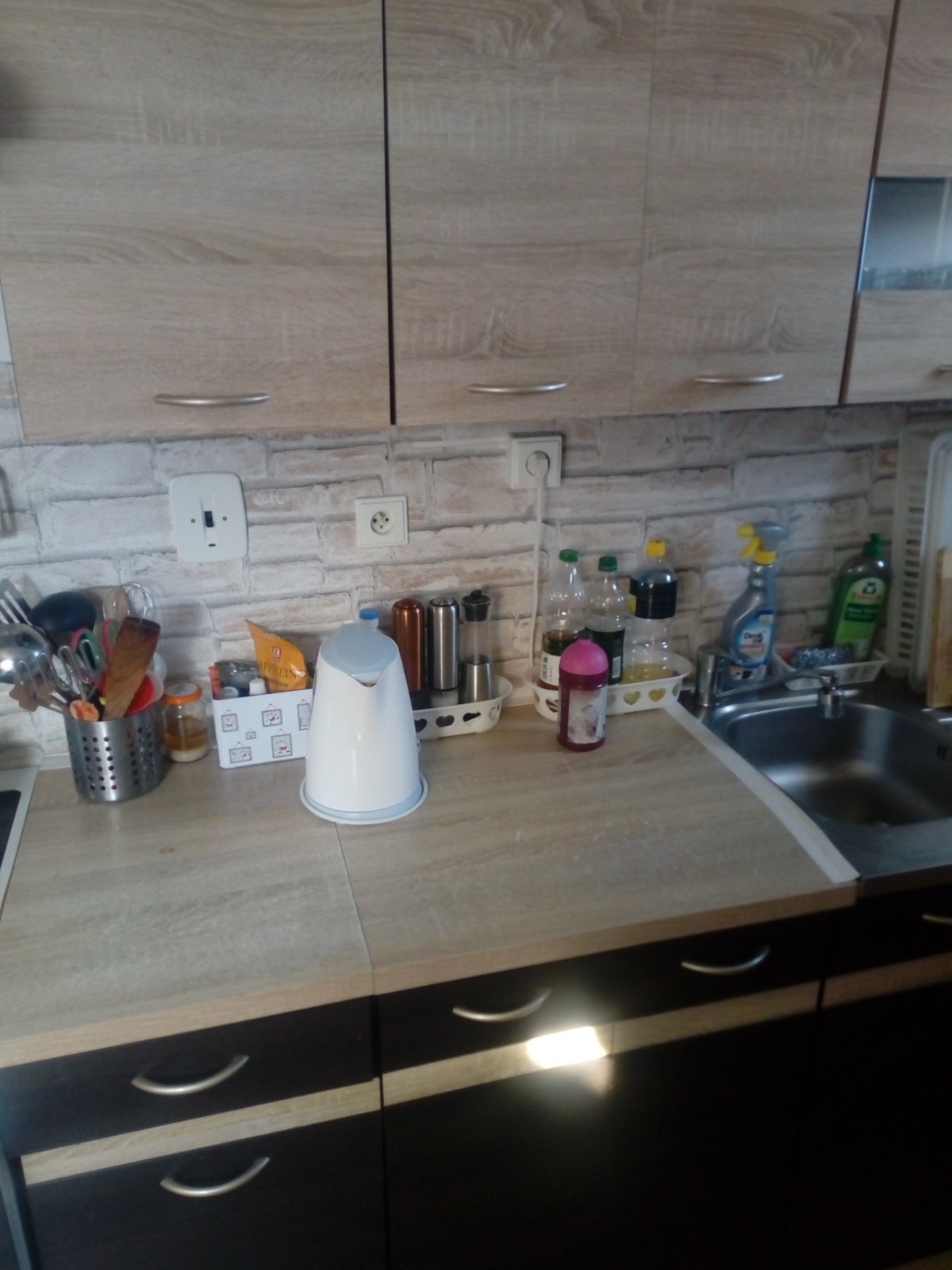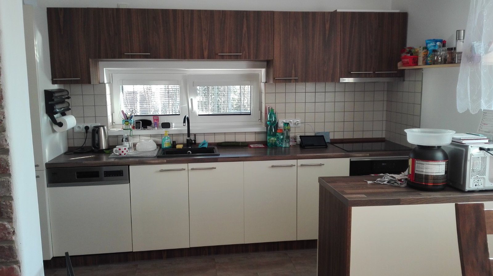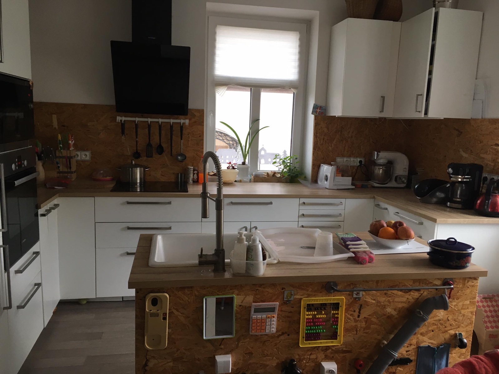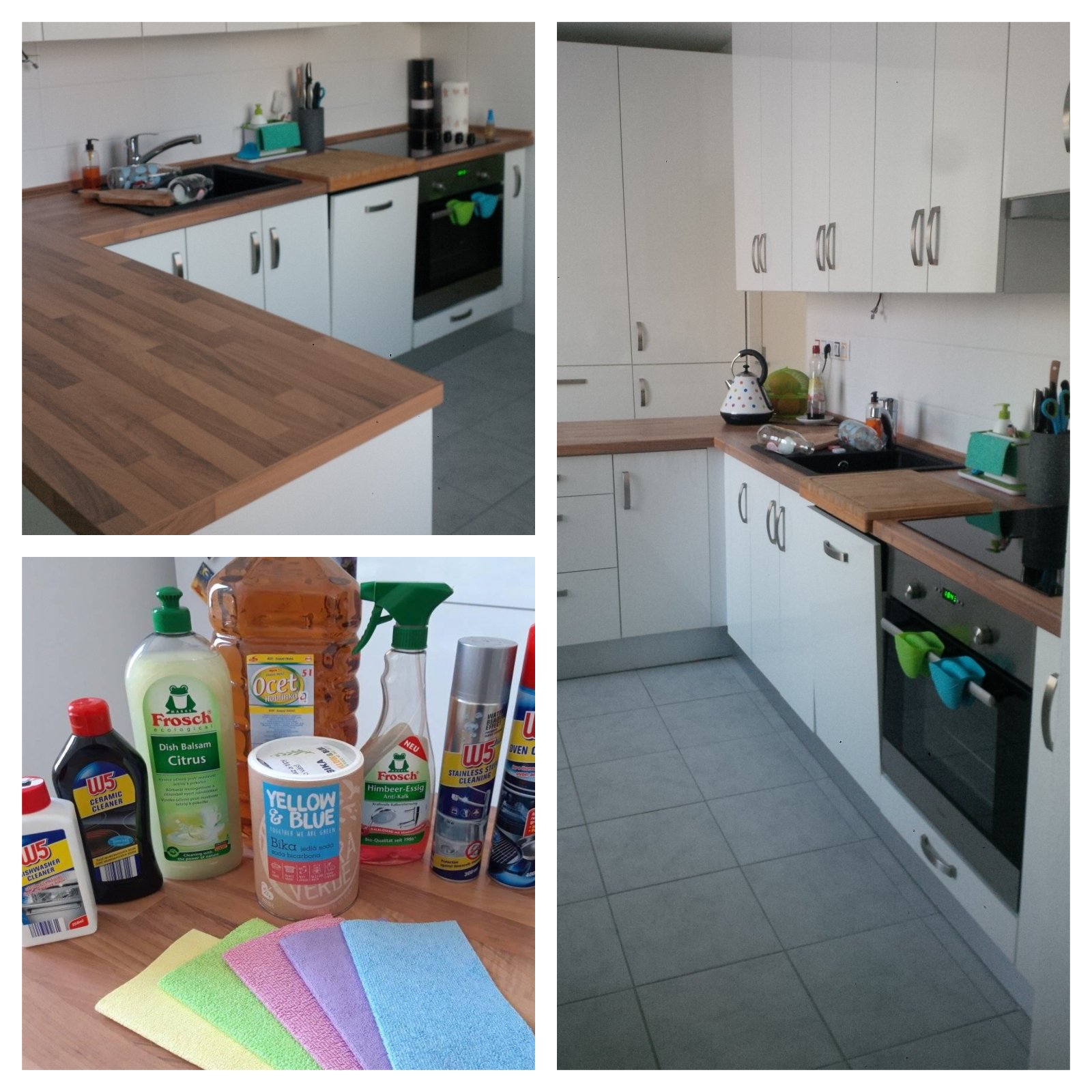 Používám sodu ocet kyselinu citrónovou a řadu z dm Denk mit sensitive prostředek na nádobí, univerzální čistič. Do myčky od konkurence eko prášek do myčky. A moje kuchyň vypadá momentálně takto. Praskla nám stoupačka takže jsme kompletně vypopeny shnilý atd. Ještě že otevřeli ty hobby markety. Nutná kompletní rekonstrukce.