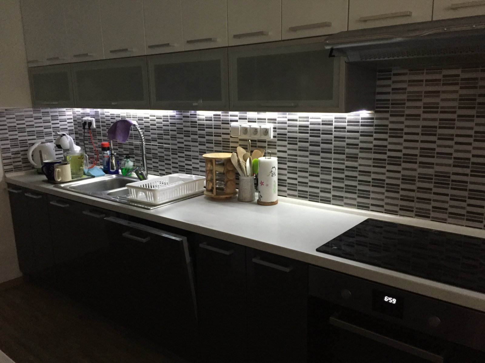 Moje ani ne měsíc nová kuchyně. Nejvíce používám tablety do myčky, Jar. A na úklid používám odmašťovač, čistič na indukční desky a univerzální čistit od Sanytolu a samozřejmě houbičky a hadříky.