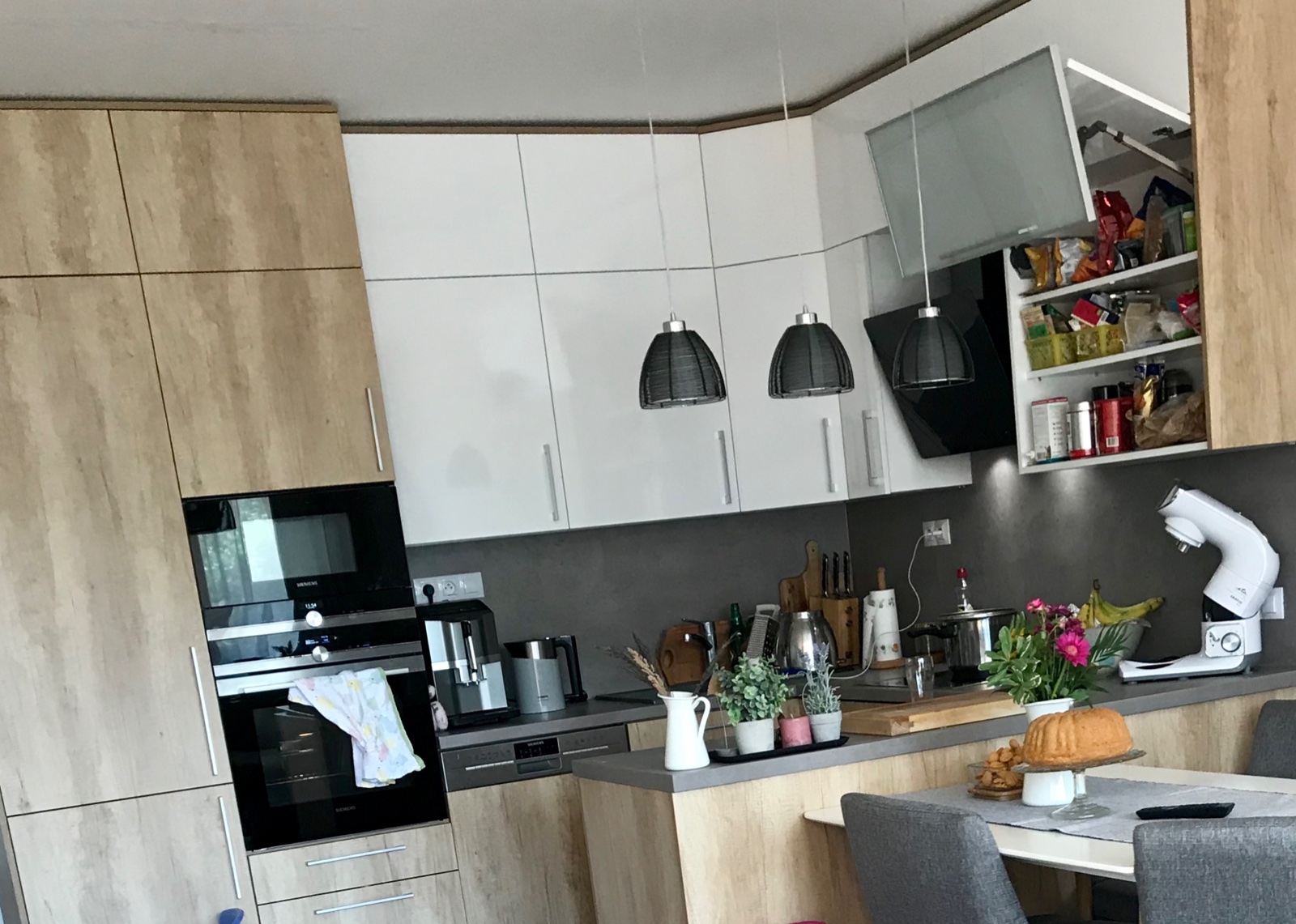 Ač nemám ráda rozdělování na mužské a ženské “práce”, musím říct, že kuchyně je u nás opravdu spíše moje záležitost. Když jsme si ji u truhláře nechávali dělat, vymysleli jsme ji celou tak, aby byla přesně podle našich představ. A to se opravdu povedlo na maximum. Je možná trapný to říct, ale fakt to tak je: miluju ji 🙂