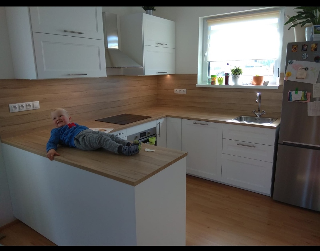 Kuchyňskou linku jsme vybírali s manželem před 13/14 lety do prvního bytu, kde jsme byli. Nebyla tam, tak jsme si vybrali dle tehdejšich možnosti, které byly teda dost omezené, když jsme postavili domeček, kuchyni jsme si přestěhovali, až bude hotovo úplně, tak porušíme novou. A už se na ni těším. Teď je taková "provizorní"... Nejčastěji používám sanytol sprej, Vileda hadříky, jedlou sodu, do myčky jedině tablety dm nature uz...