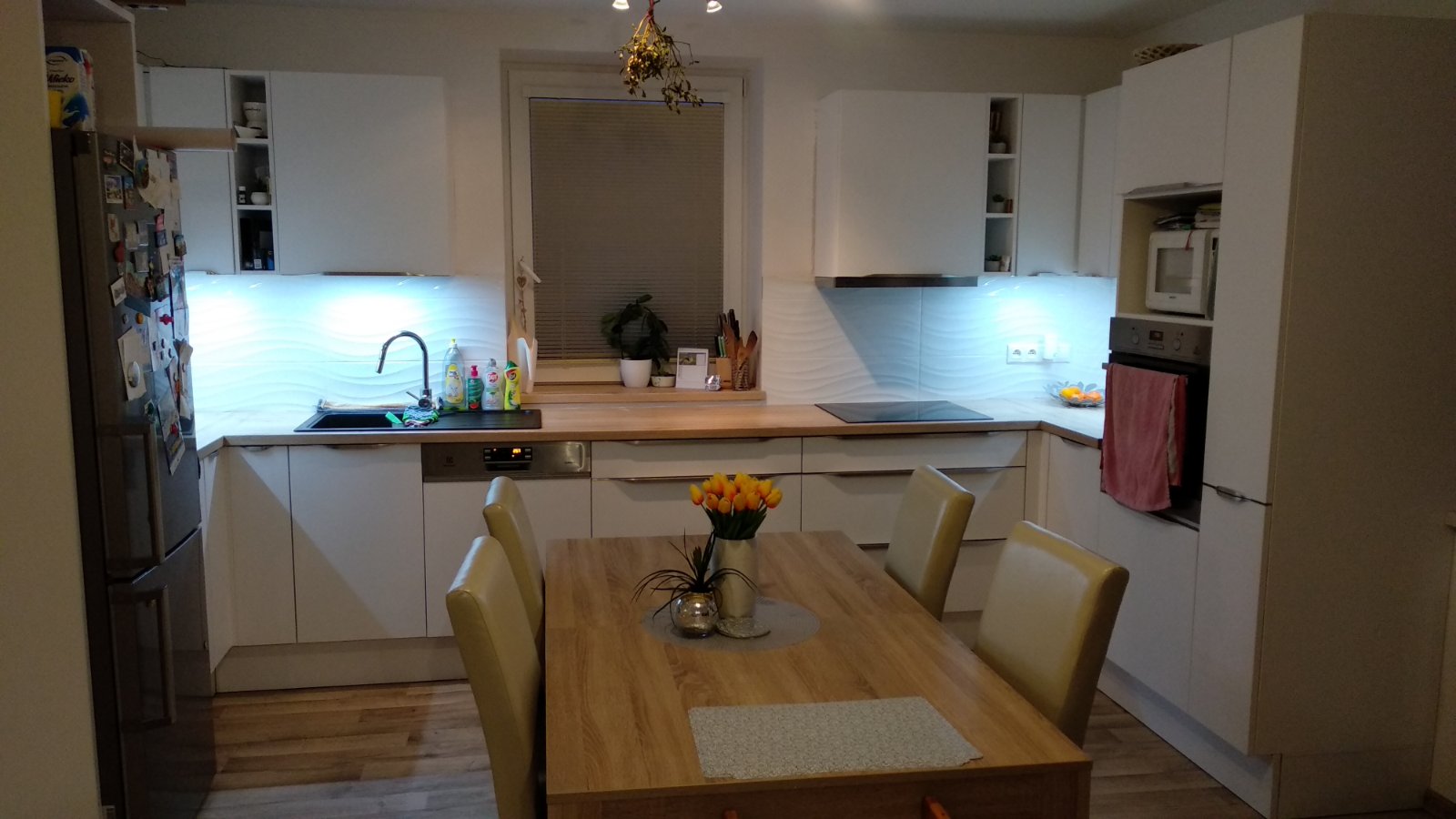 Ahoj také já se zapojit do soutěže ale nejdřív musím Sklonit poklonu všem těm (a koukám že tedyvětšině z vás) protože ty bílé kuchyně vypadají nádherně ale já si je neumím představit v běhu s dvěmi dětmi takže máte poklonu v tom že dokážete udržet čisté a tak krásné.