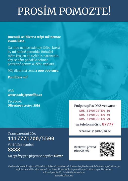Čas se neúprosně krátí a s ním také možnost pomoci dvěma vážně nemocným chlapečkům - Olimu & Adámkovi. Více informací o diagnóze SMA a celkově pomoci najdete na jejich stránkách: https://www.nadeje-pro-oliho.cz/ & https://www.adamkovacesta.cz/
