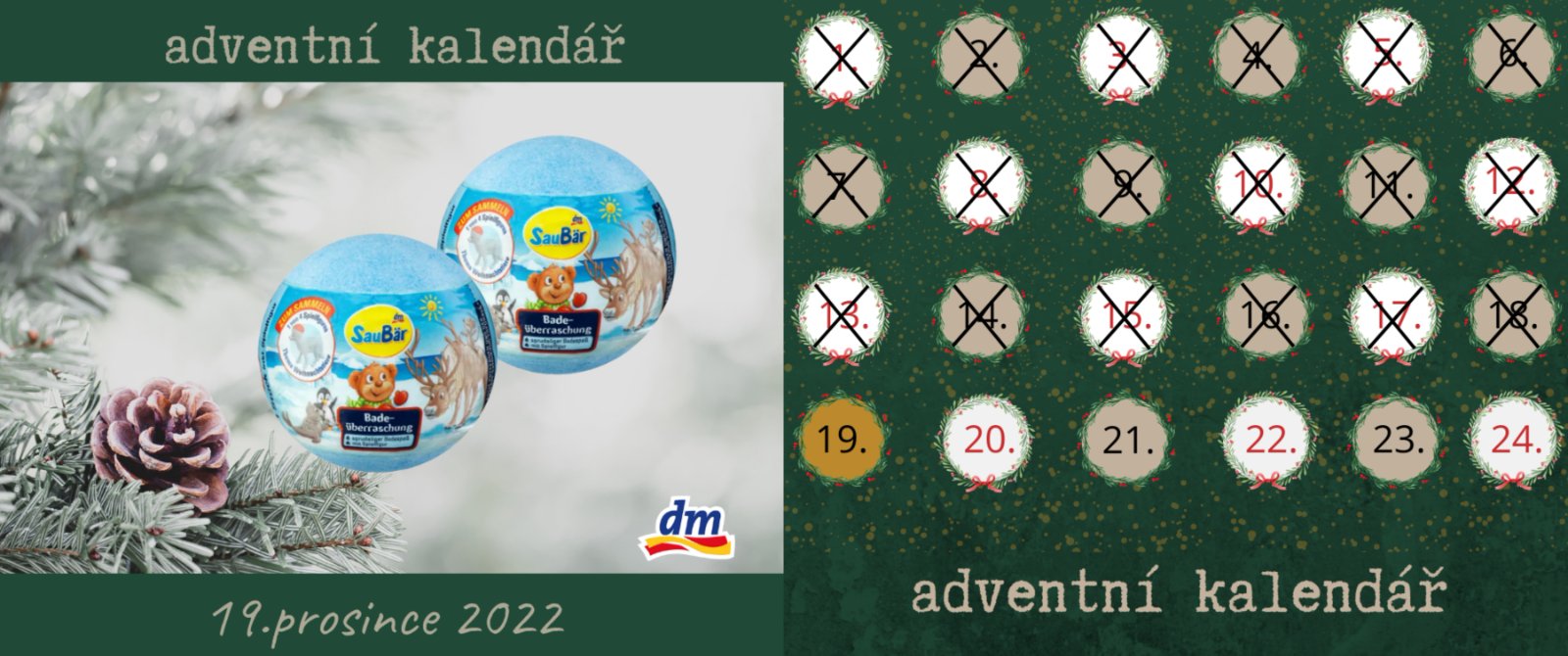 Devatenácté okénko adventního #dm kalendáře se právě otevírá a najdete v něm 2 kusy SauBär koule do koupele s hračkou🎁