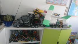 Měli jsme velký box s víkem a vždy si syn stavěl podle plánu, které si nechával a nebo z hlavy. A vždy to nahazel zpět do bedny přikryl a bylo.