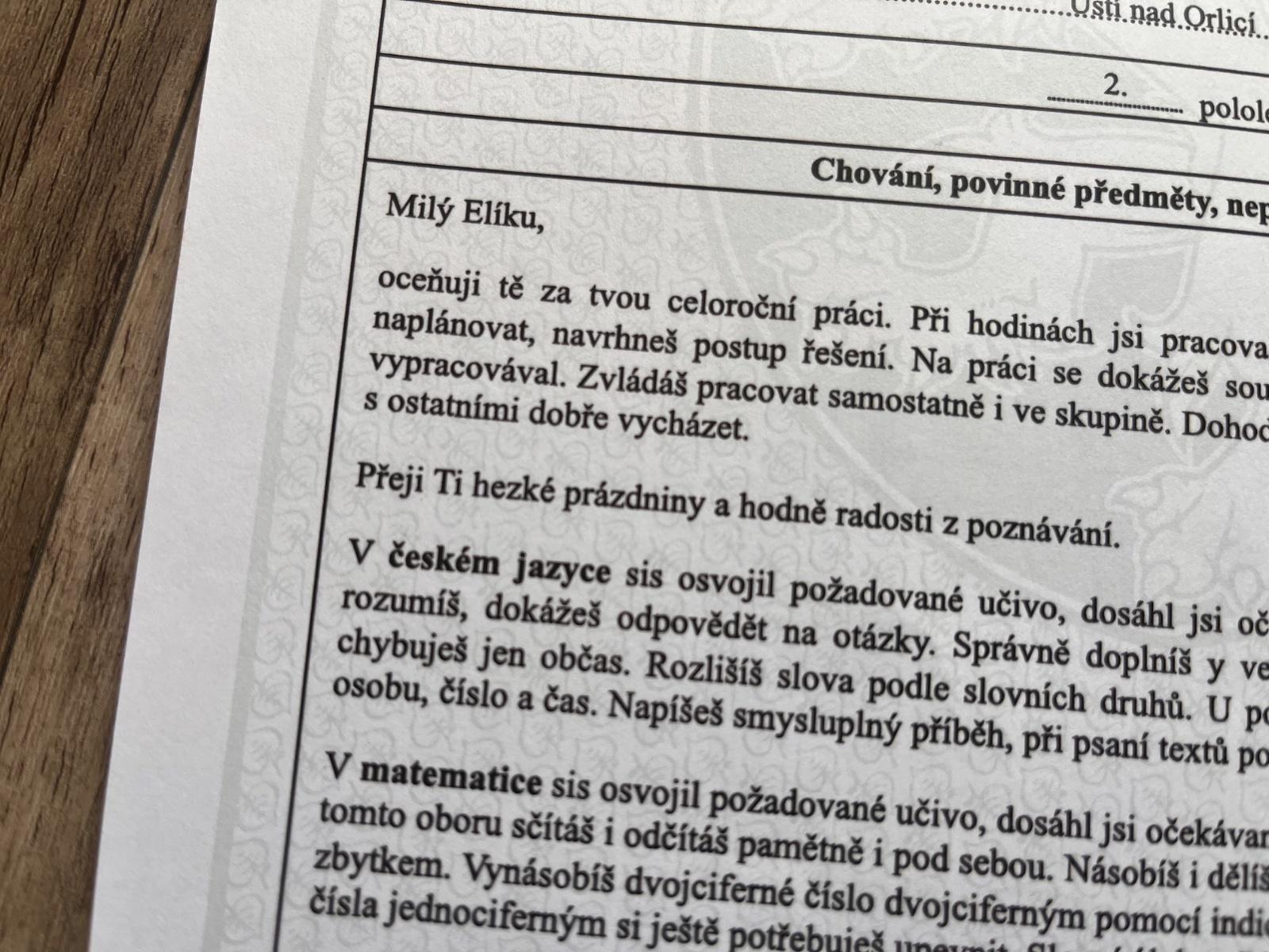Moc se mi na tom líbí, jak děti to vysvědčení berou jako svoje, tedy že je pro ně. Prostě si ho vezmou, přečtou, schovají. Vůbec jim nedochází, že by ho mohli i někomu ukázat, že by to mohlo někoho zajímat. A já pak pokaždé slzím, jak jejich učitelé dokáží na každém z nich vidět to dobré, nejen co jim jde při školní práci, ale i jací jsou jako lidé a kamarádi.