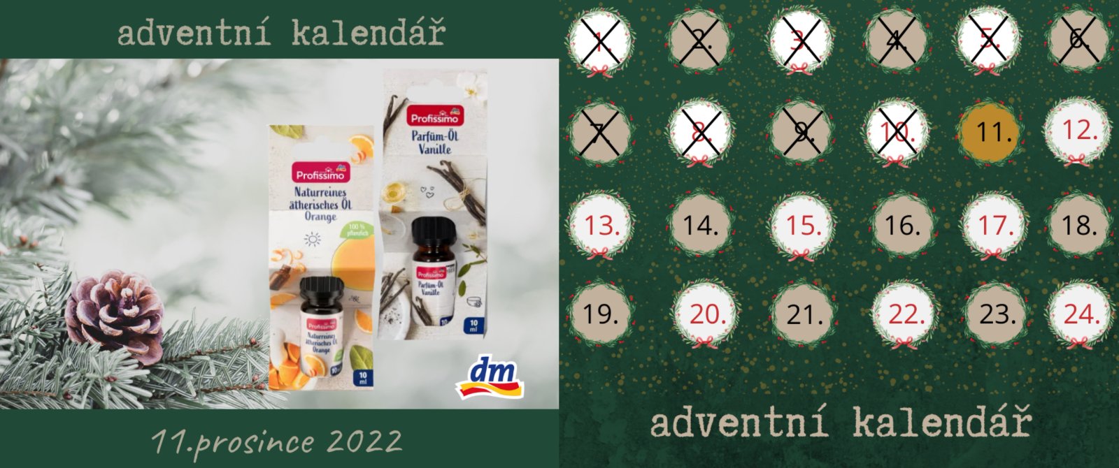 Jedenácté okénko adventního #dm kalendáře se právě otevírá a najdete v něm Profissimo éterický olej Vanilka a Profissimo éterický olej Pomeranč🎁