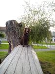 Naše zrzavá holka i do nepohody - Nyelka, fenka Rhodéského Ridgebacka, 2,5 roku - jinak vášnivá vodačka, pokud tedy neprší 🙂
