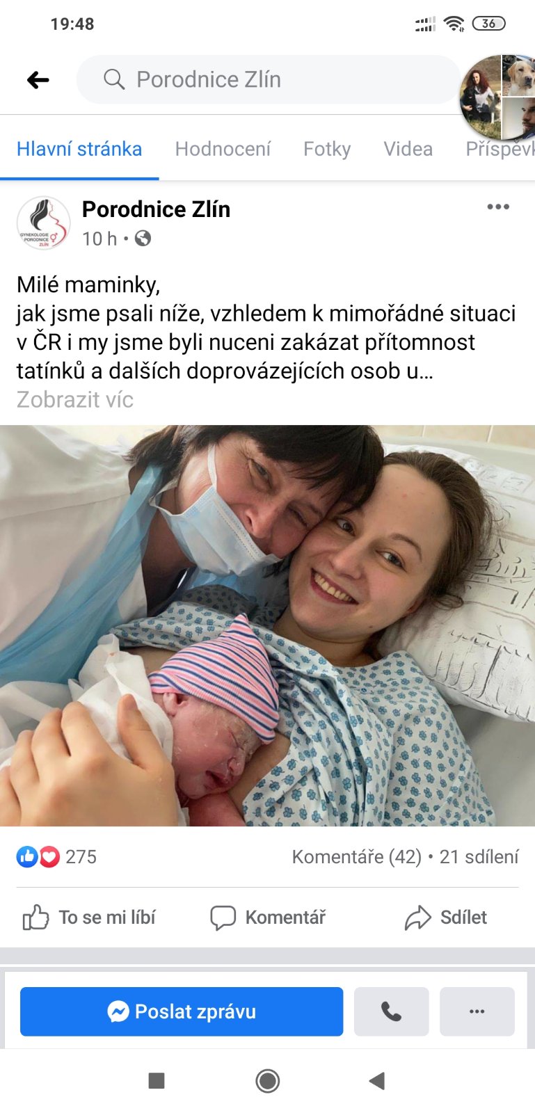 Chápu vážnost situace, chápu že snahou je ušetřit ochranný materiál, kterého je i pro zdravotníky málo. Chápu že prvotní myšlenkou bylo nezatahnout si corona virus do zdravotnických zařízení. Ale pokud stejně musejí umožnit návštěvu po porodu, tak je celé to nařízení nesmyslné. Ano, každá z nás by určitě zvládla porodit sama, a dost možná i bez nějakých traumat. A především je mi líto te nenávisti, která se vzedmula vůči těhotným, ze kterých se dělají neprávem fnukny, které ani samy neporodi... Všem těhotným držím palce, přeji hladký a příjemný porod a hlavně zdraví.❤