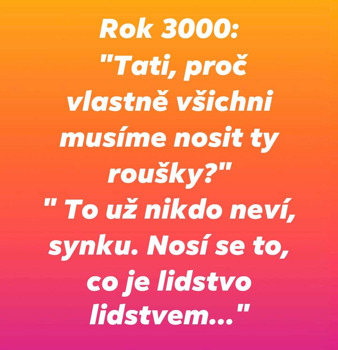 @apacheee No a co jsi tim vsim chtela rict? Nechapu. Zase radoby vtipna a sarkasticka narazka na to, jak jse vsechno spatne? Ted je potreba nosit rousky a tak se nosi rousky. To, ze ji nekdo nosi i kdyz je sam doma neni problem rozhodnuti vlady, ale nedostatecna mozkova kapacita onoho jedince. S koronavirem si ted nedokaze poradit nikdo a v zadne zemi.Vsichni odhaduji a rozhoduji se za pochodu. Stejne tak, jako ze nikdo nevi, jak dlouho se budou muset nosit rousky.