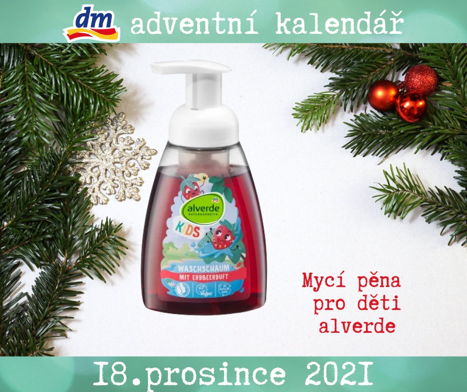 Osmnácté okénko adventního #dm kalendáře se právě otevírá a najdete v něm alverde NATURKOSMETIK Kids mycí pěnu Jahoda🎁