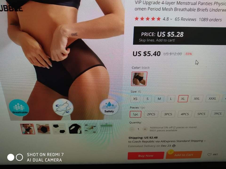 Jinak mám zatím troje a je to málo. Pak jsem si zkusila objednat ještě z aliexpressu, ale ty jsou úplně na nic. Teda nejsou, mám je jako pojistku na noc, k nočním vložkám, ale nemají téměř žádnou savou vrstvu vpředu.