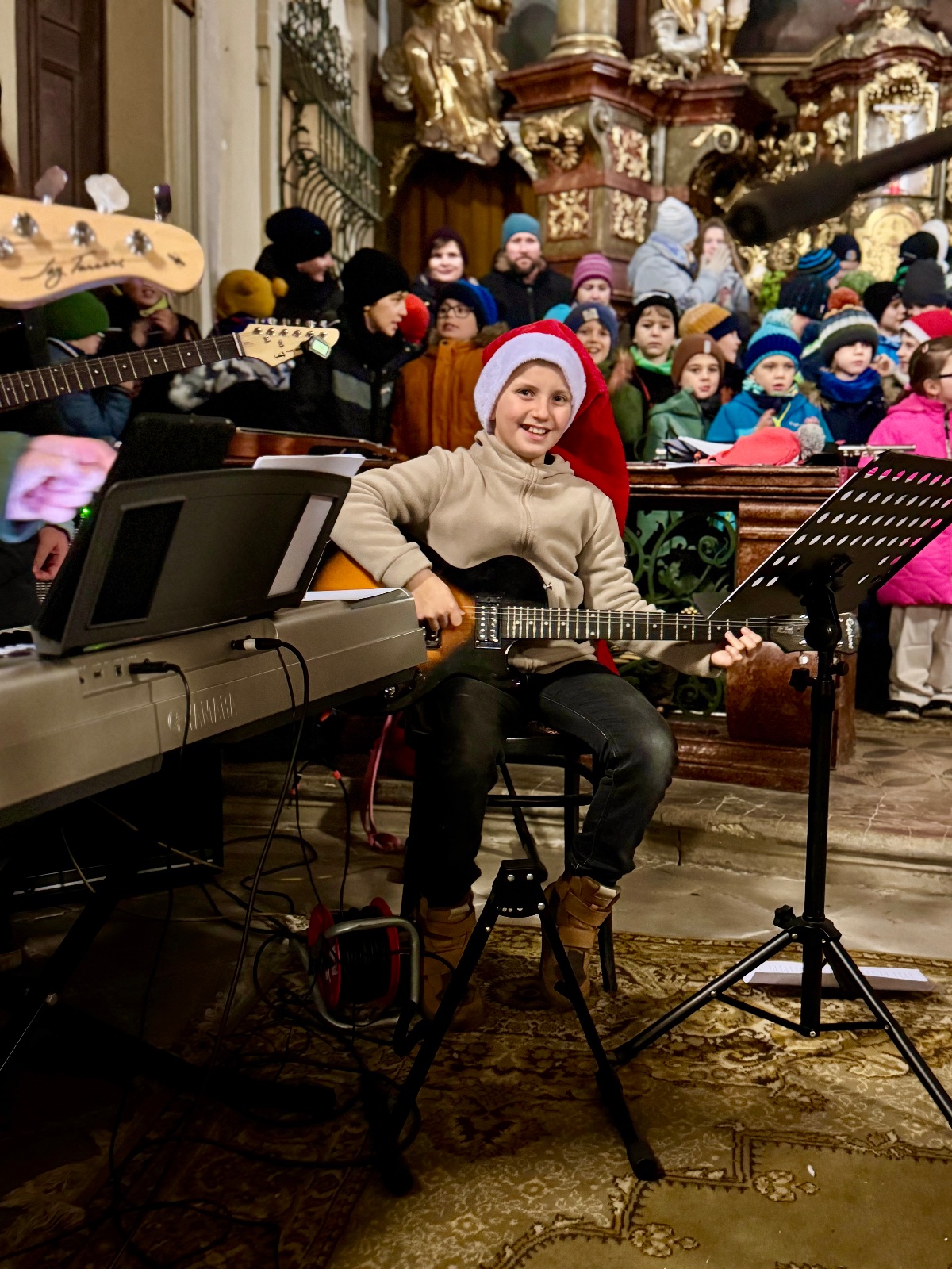První koncert v kostele a hned s elektrickou kytarou. V 11 letech docela dobrý 😁