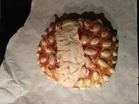 Opět nejdříve kvásek z cukru, droždí a trochy vlažného mléka. Mezitím si smícháme mouku se solí . Když vzejde kvásek, přidáme ho do mísy. Přidáme i olej a zbytek mléka. Vypracujeme těsto a necháme cca 1 hodinu kynout. Poté vyválíme plát - snažíme se o kruhový tvar, ale rozhodně nemusí být nijak krásný a pravidelný🙂