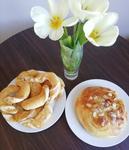 Plát srolujeme, začistíme okraje, veku potřeme vodou a dáme péct na 180 stupňů. Já peču cca 25 minut. Když pečete poprvé, raději si pohlídejte, stačí chvilka a je to moc🙂