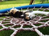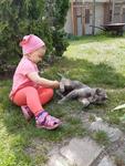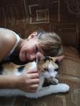 Kočka, kterou rádi krmime a drbeme, není naše. Buď je toulavá, nebo má hodně domovů 🙂 chybí ji jedna zadní noha, tak ji říkáme TROJNOŽKA. Popravdě to vypadá dost divně až strašidelně, tak ji asi dost lidi odhání...chodí si k nám pro pohlazeni a pak v naši společnosti odpočívá v trávě i hodiny
