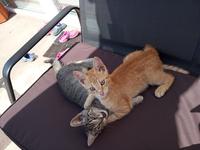 Tak naši kočičí členové rodiny jsou 3 - bílý kocourek Míňák - původně to byla kočička Mína :D Kterého jsem před 3 roky našli... Po roce se k němu přidala kočička Mydlinka - také jsem ji našli jako malé koťátko a kupodivu krásně voněla, tak jí dali děti takové jméno :D Loni na drakiádě našli děti skoro oběšeného rezavého maličkého kocourka na polotě a ten u nás také zůstal :D Jmenuje se Gouda...