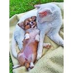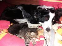 Radovaly by se 3 kočičky..roční Tim, 5 měsíční Miky a 5 měsíční Lucky. Tima a Mikyho jsme si vzali z útulku a Luckyho nám někdo hodil přes plot. Na fotce se svou adoptivní mámou - pitbulkou Shirou❤