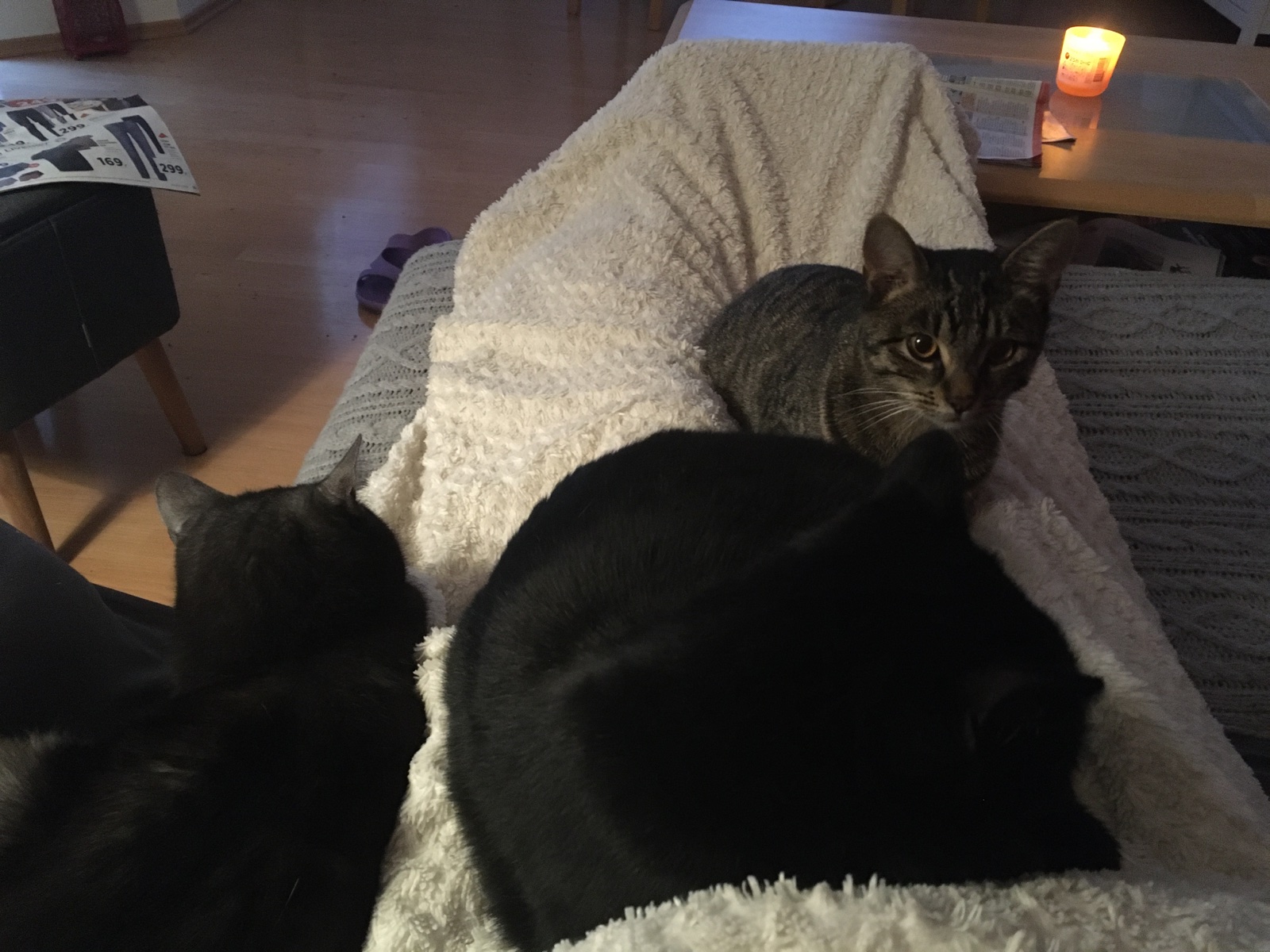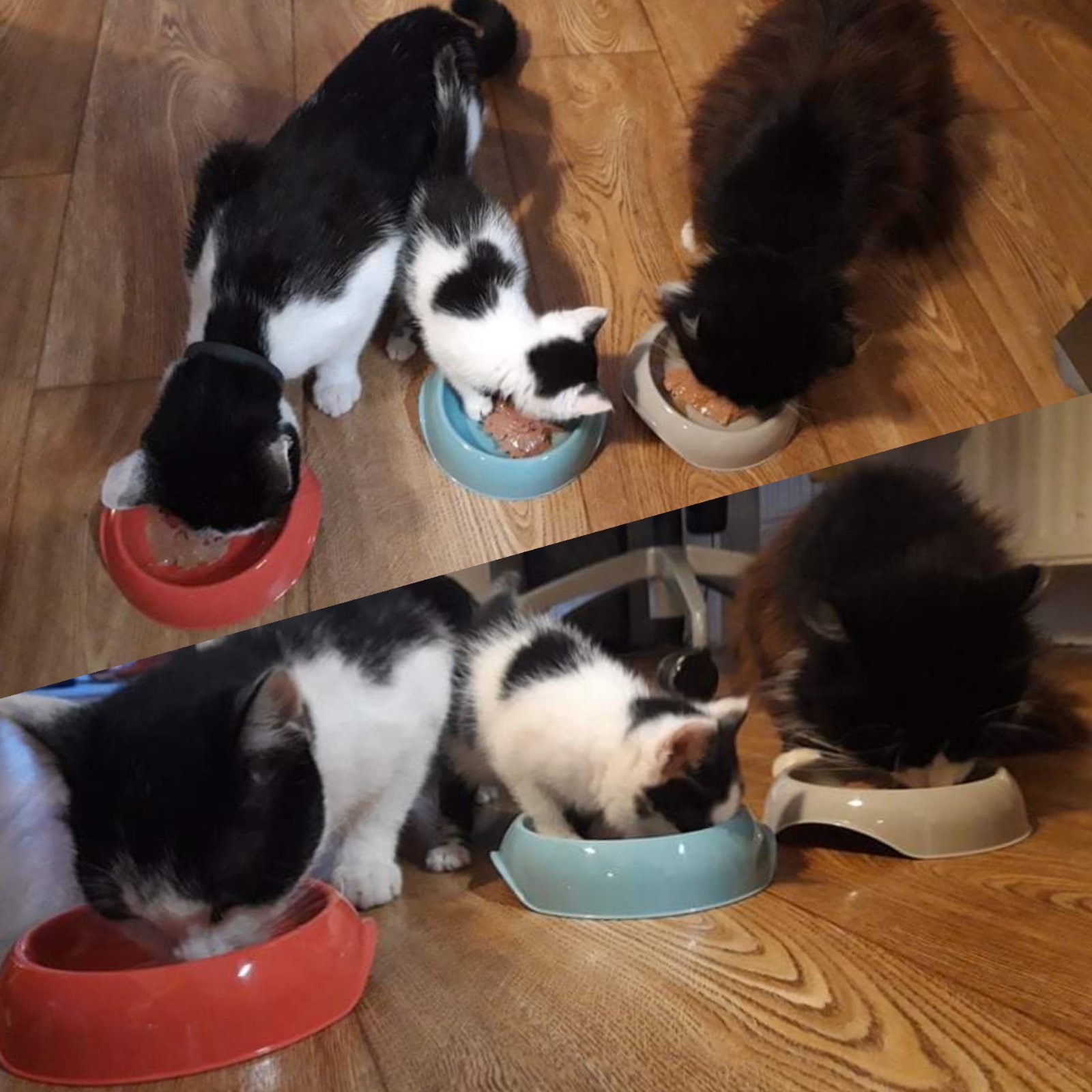 Kočky výhradně zachraňujeme 🙂 prostě se občas nějaká rozhodne, že s náma bude bydlet a je to... Naposledy jsem našla kotě v neděli - zánět v obou očích, kdybych ho nesebrala a okamžitě s ním nešla k doktorce, přišlo nejdřív o oči a pak o život 🙁 A protože je černobílé, nehledám mu novej domov a zůstane s náma 🙂 Takže zleva: