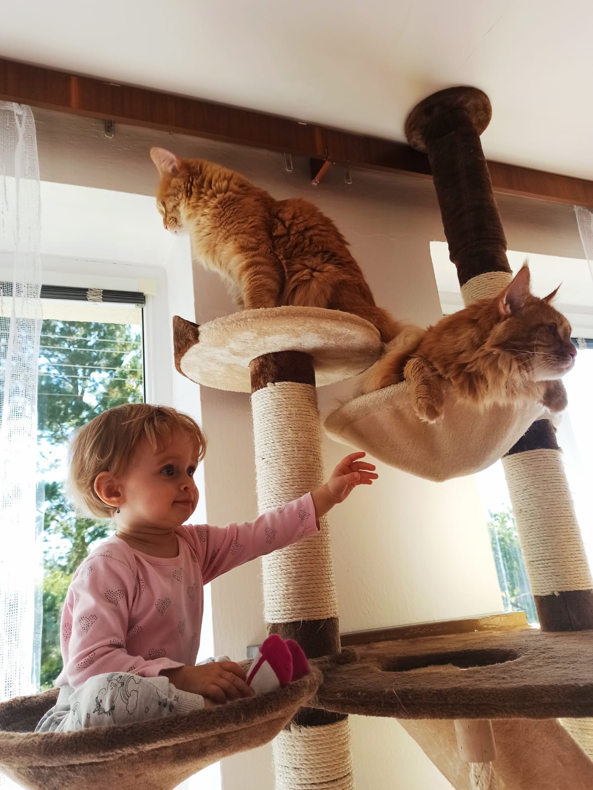 Keď to vykoná potrebu dá o tom nahlas vedieť, necháva to hračky pod nohami, musí sa to pravidelne kúpať, je to ukecané a vyžaduje si to pozornosť, nezje len tak hoci čo, keď to človek nechá samé tak to plače a vždy niečo vyvedie.... Nie, nepíšem o ďalšom decku ale o našej kočke Chilly 😂