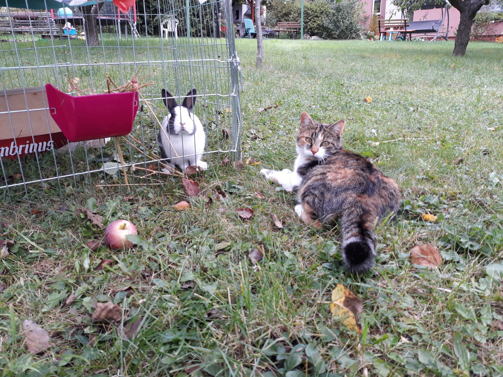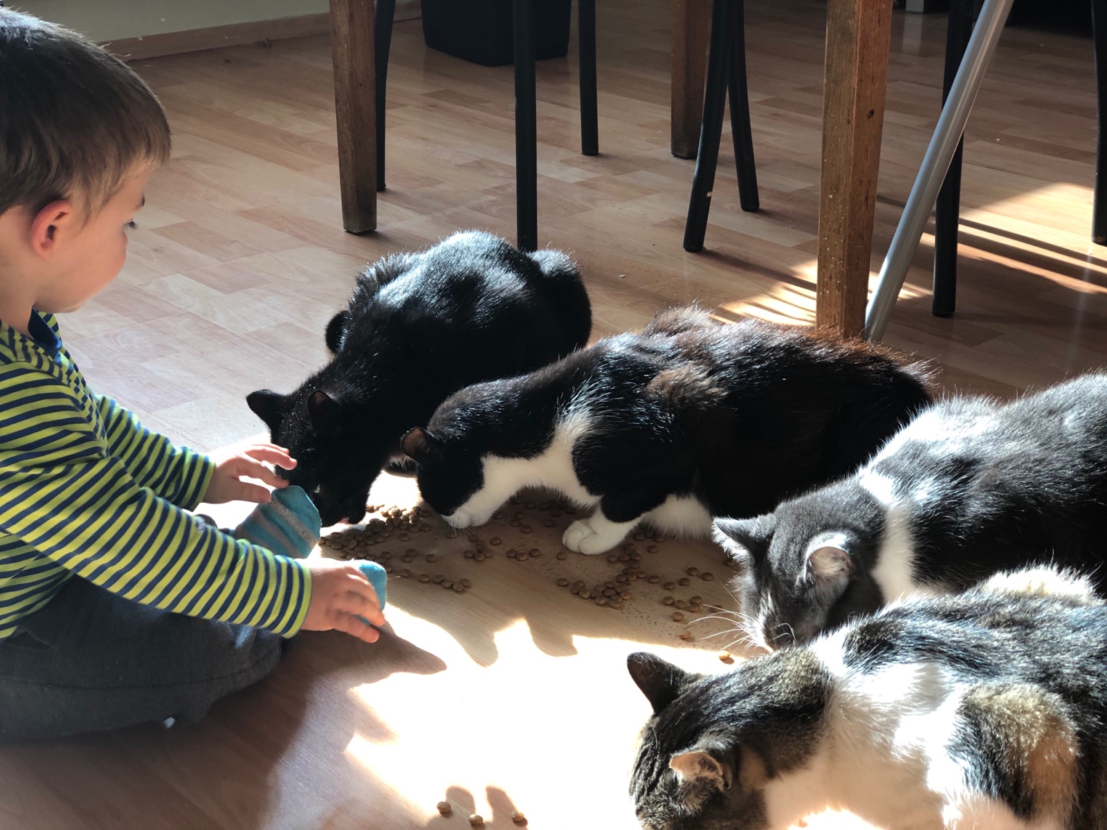 A rozdělily bysme se i se dvěma kočičkama od sousedů. Naše kočičky si totiž vzájemně chodí na granulky 😃