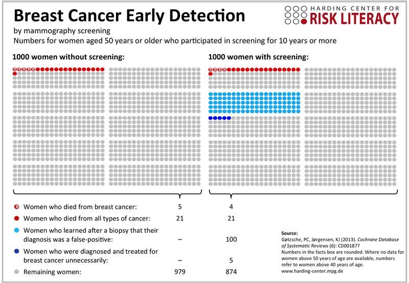 Ten graf je pouze o rakovině prsu (a škoda, že se zabývá pouze ženami nad 50). Celý článek, který jsem četla, byl o tom, že se například ve vyšším věku člověku odhalí rakovina, která se začne léčit, ačkoliv je reálná šance, že by ten člověk s tím žil bez problémů třeba ještě 10 let, v klidu, o ničem by nevěděl, žádné starosti a bolesti by neměl.