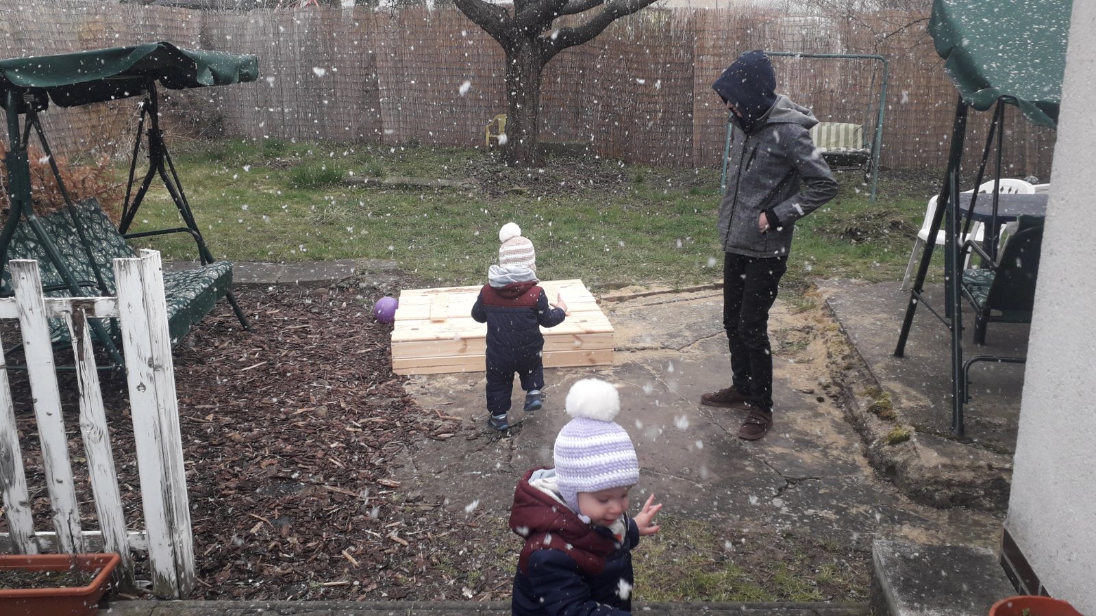 Včera jsem klukům objednala jarní boty. Takže dnes co? Dnes sněží 😂😂😂
