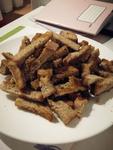 Topinky jako takové si dáváme občas a spíš nasucho... Ale co teď jedeme skoro každý vecer k vinu: v olivaci rozmíchat nějakou dobrou kořenící směs (u nás vede Gyros, Souvlaki nebo Bifteki z řeckého týdne z Lidlu 🙂), pořádně tím potřít několik krajíců chleba, nakrájet na proužky a dat na plech do trouby udělat dokrupava. Mnam!