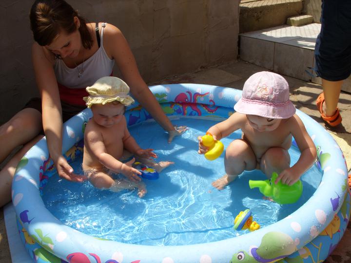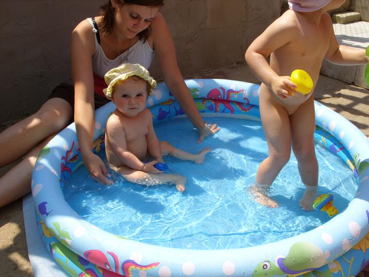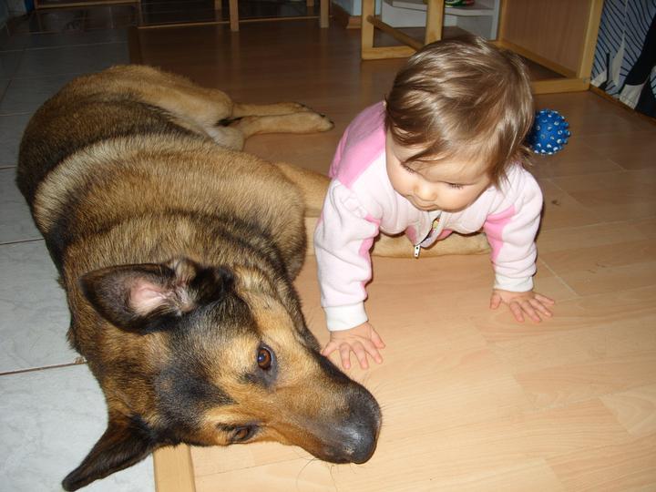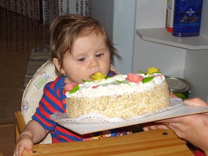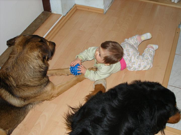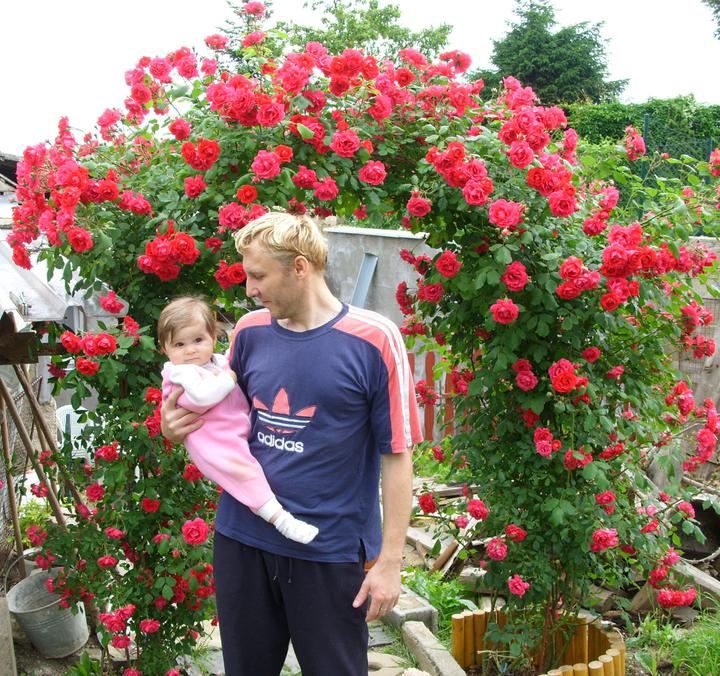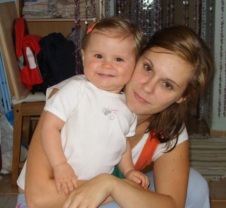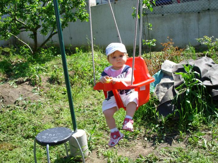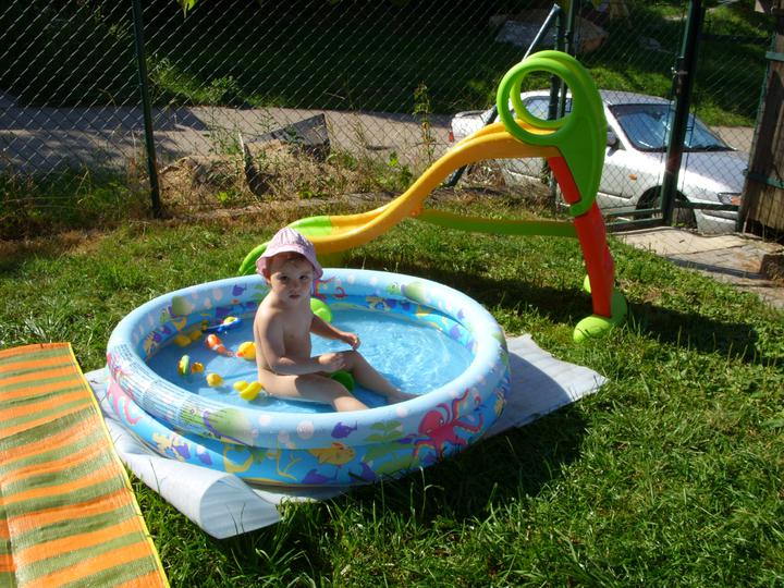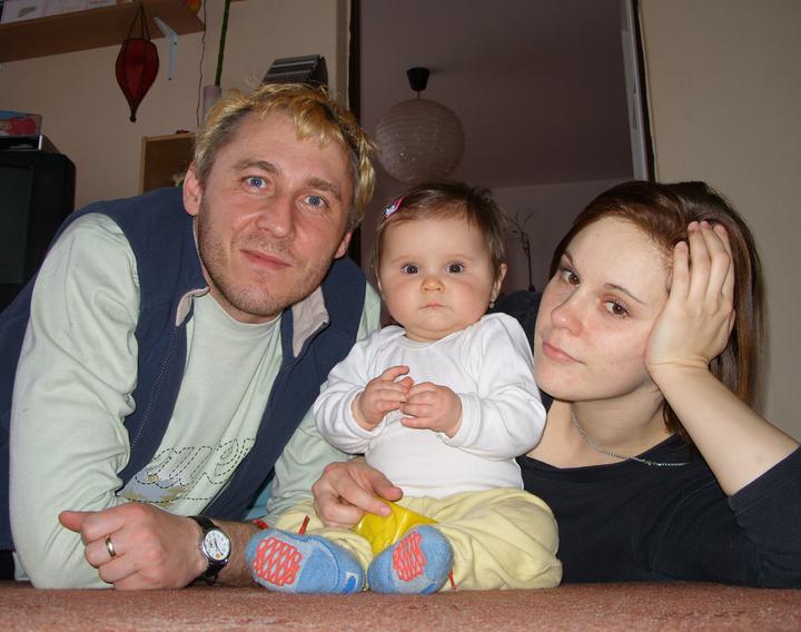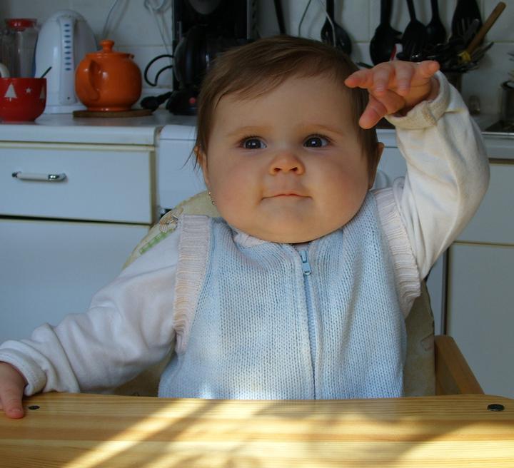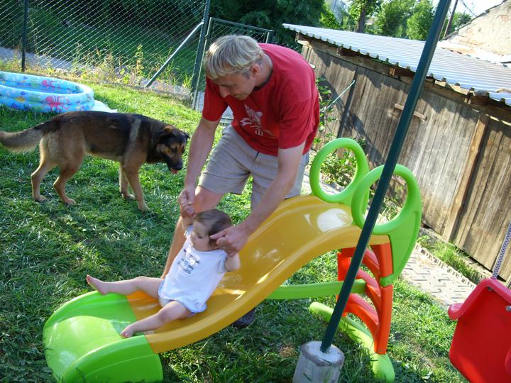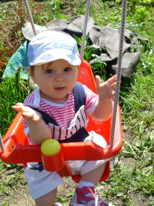 Emi už má 14 měsíců, krásně chodí sama i venku terén docela zvládá, poslední dobou stále opakuje baf, baf, mama, tata, ham a má už 8 zoubků. Umí ukázat pupík, ouško a nosík a je to okatá divoška plná energie