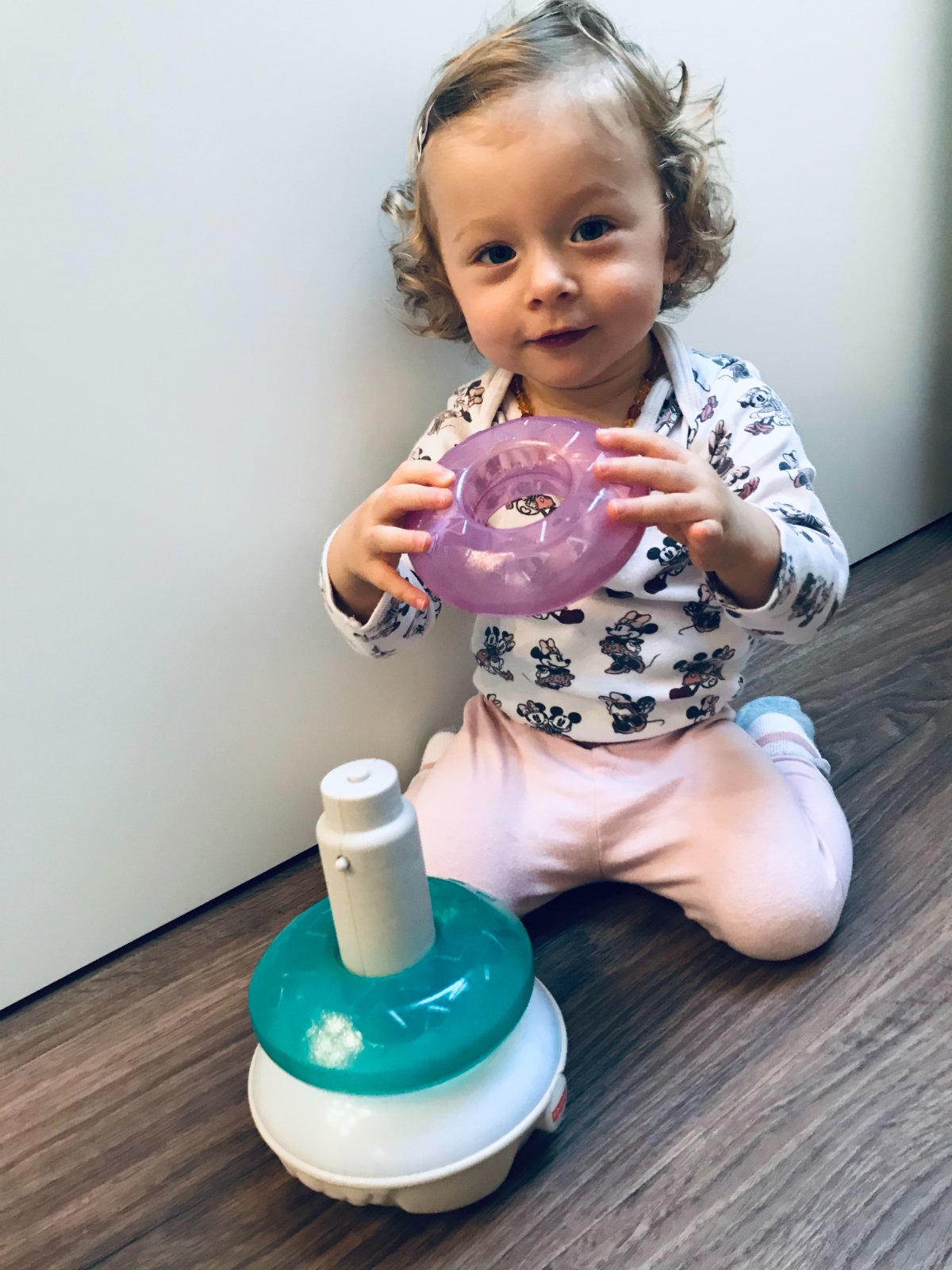 Mluvící lama kroužky – jak jsem psala výše, ty dceru zaujaly nejvíc. Taktéž hraje barvami, zpívá a je skvělá pro první koordinaci pohybu. Moc se mi líbí, že dítě povzbuzuje. Cena je kolem 400-500,- záleží na obchodu.