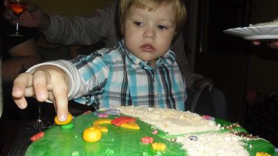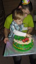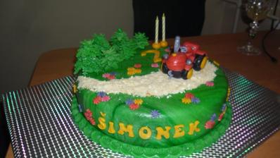super dort - taky by se mi takový hodil na začátku srpna 🙂 jen bych traktorovi musela dodělat oči 🙂 - malý ujíždí na Traktor Tom 😀